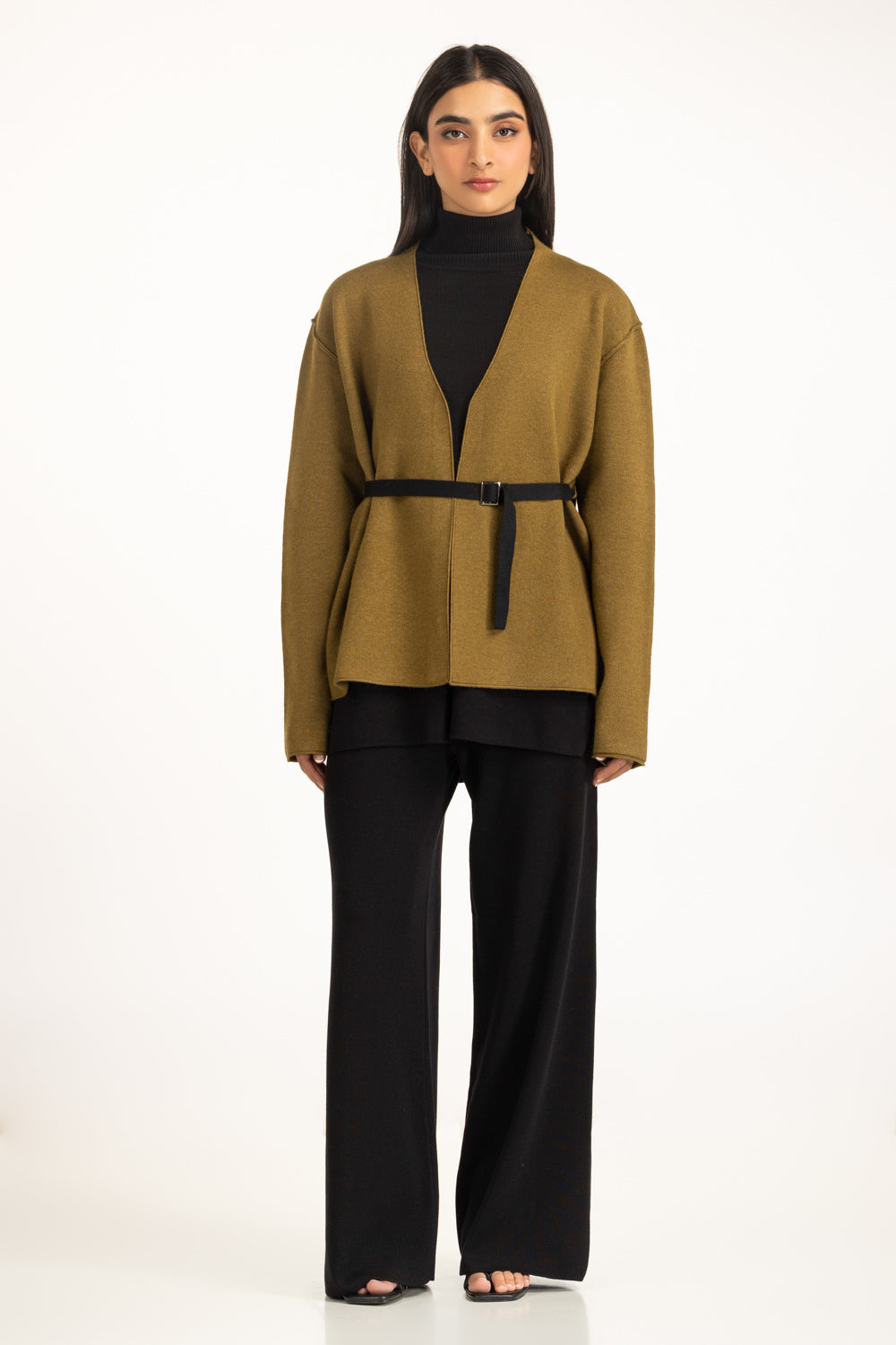 A rich olive cardigan designed in a regular fit with a sleek front-open cut for effortless layering. The soft black belt defines the waistline, offering comfort and structure. Crafted in a fine winter knit that feels warm yet breathable. A modern classic tailored for women who prefer understated sophistication.����������������������