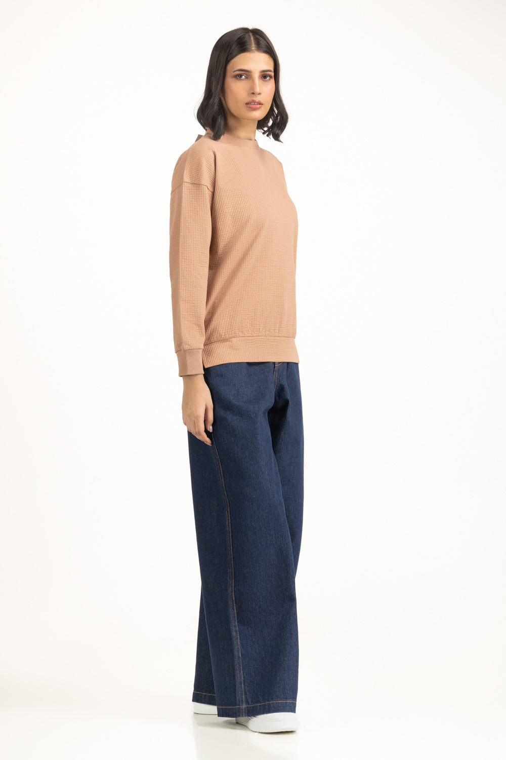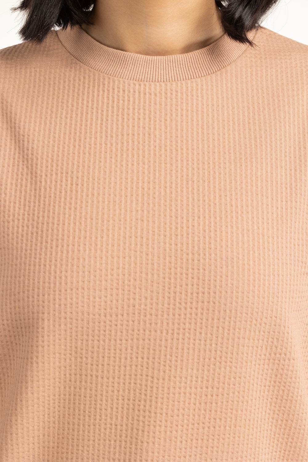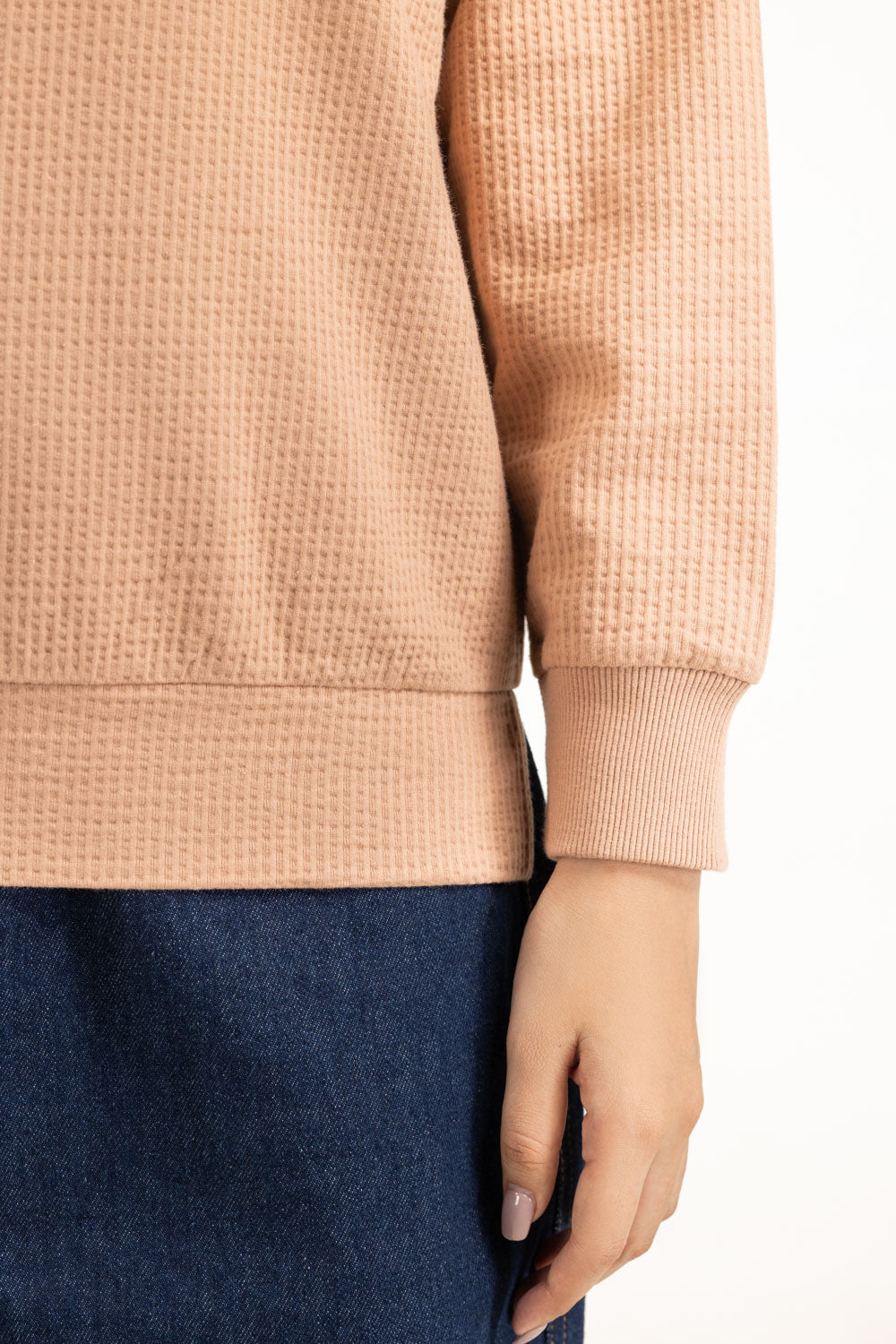 The knitted waffle texture meets the calm pink hue in this sweatshirt. The blended fabric stays gentle...