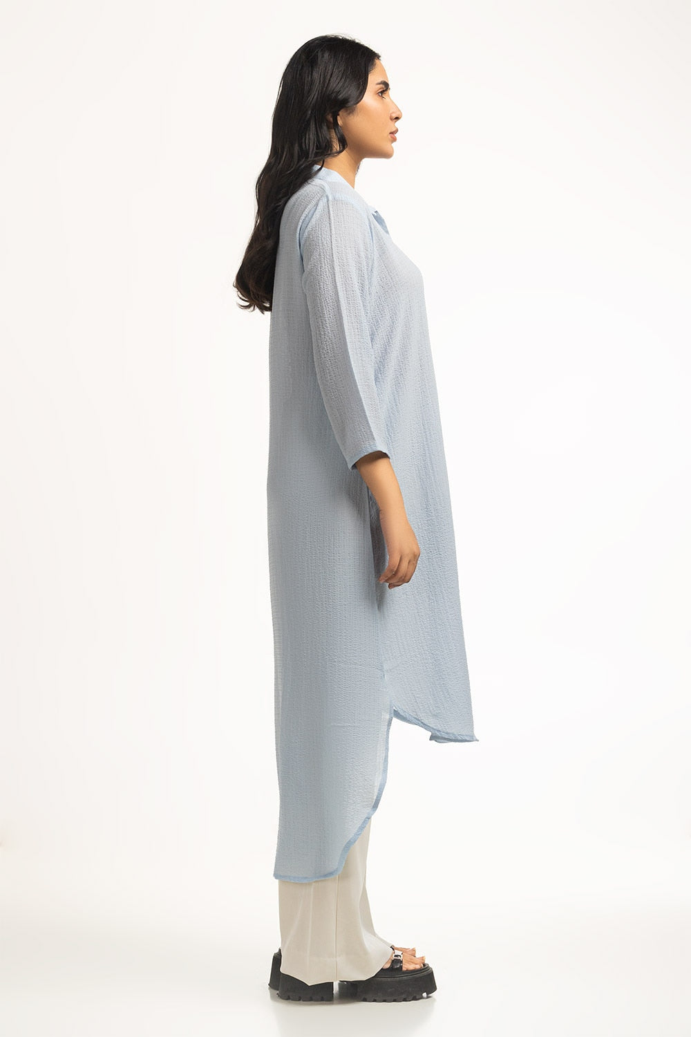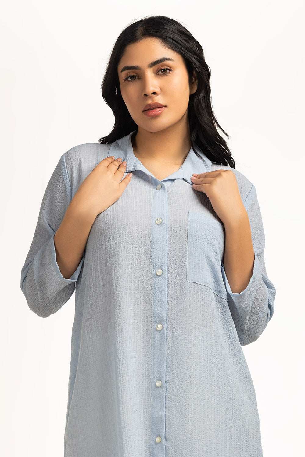 Front-open dress in a soothing hue is a versatile piece for your everyday wardrobe. It's regular fit and textured fabric make it perfect for any occasion all season long.