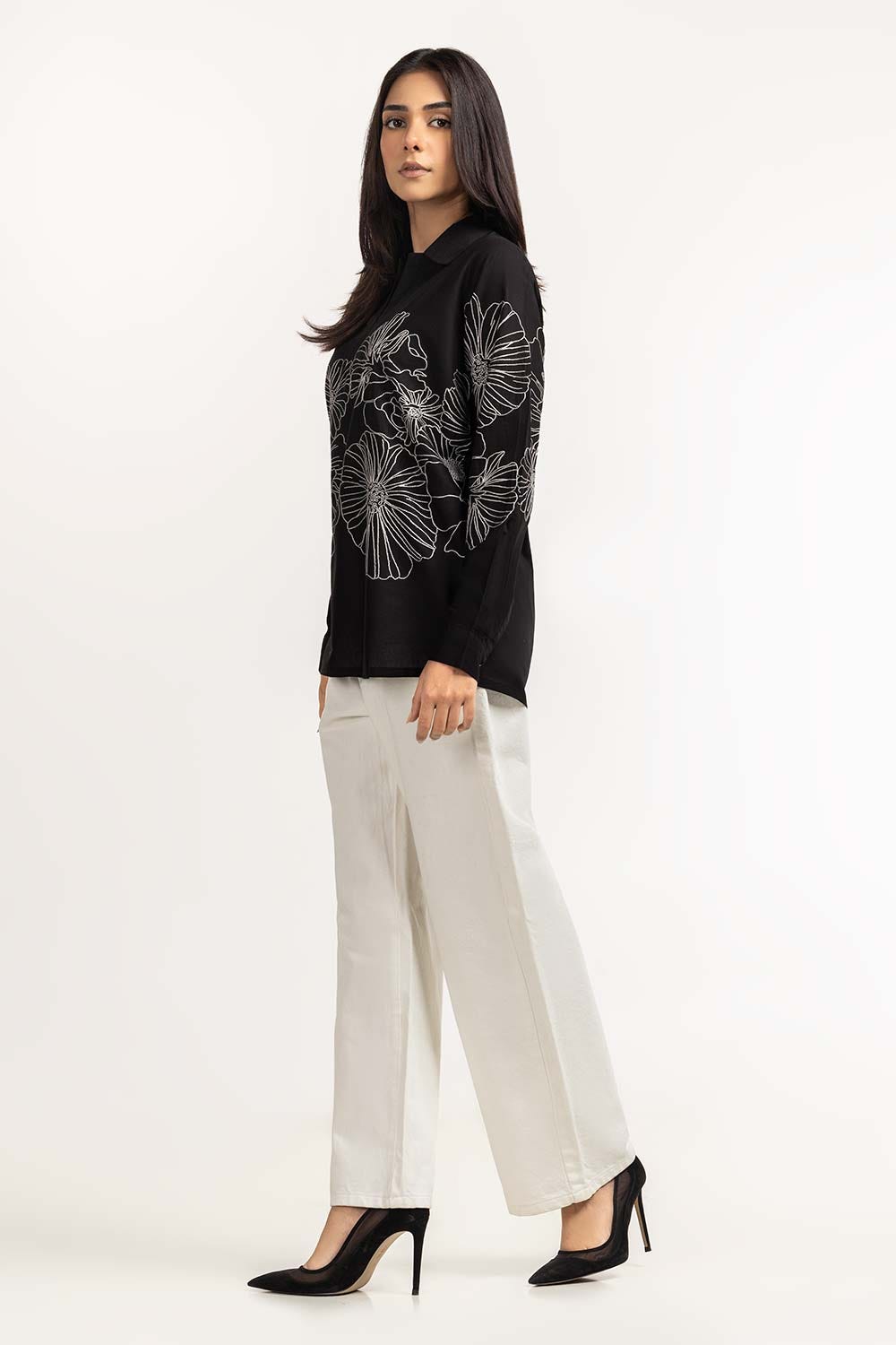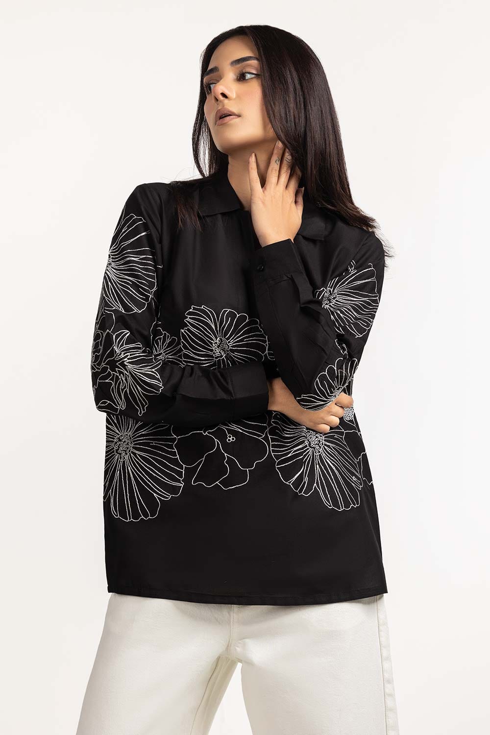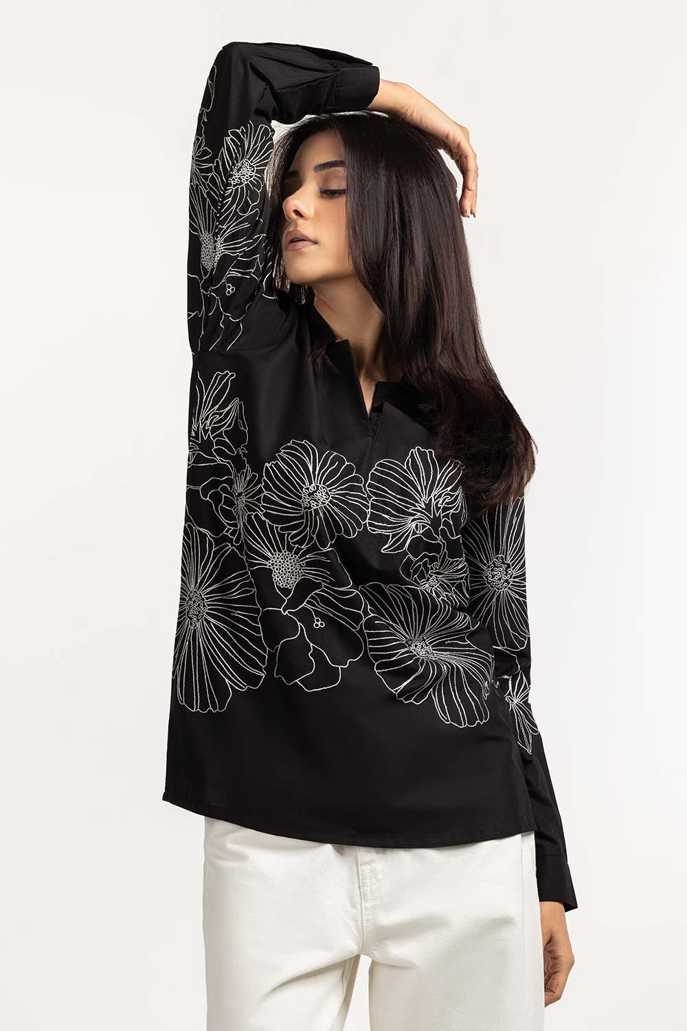 Blouse With Collar And Embroidery Detail On Front And Sleeves. Regular Model height is 5' 5" Model...
