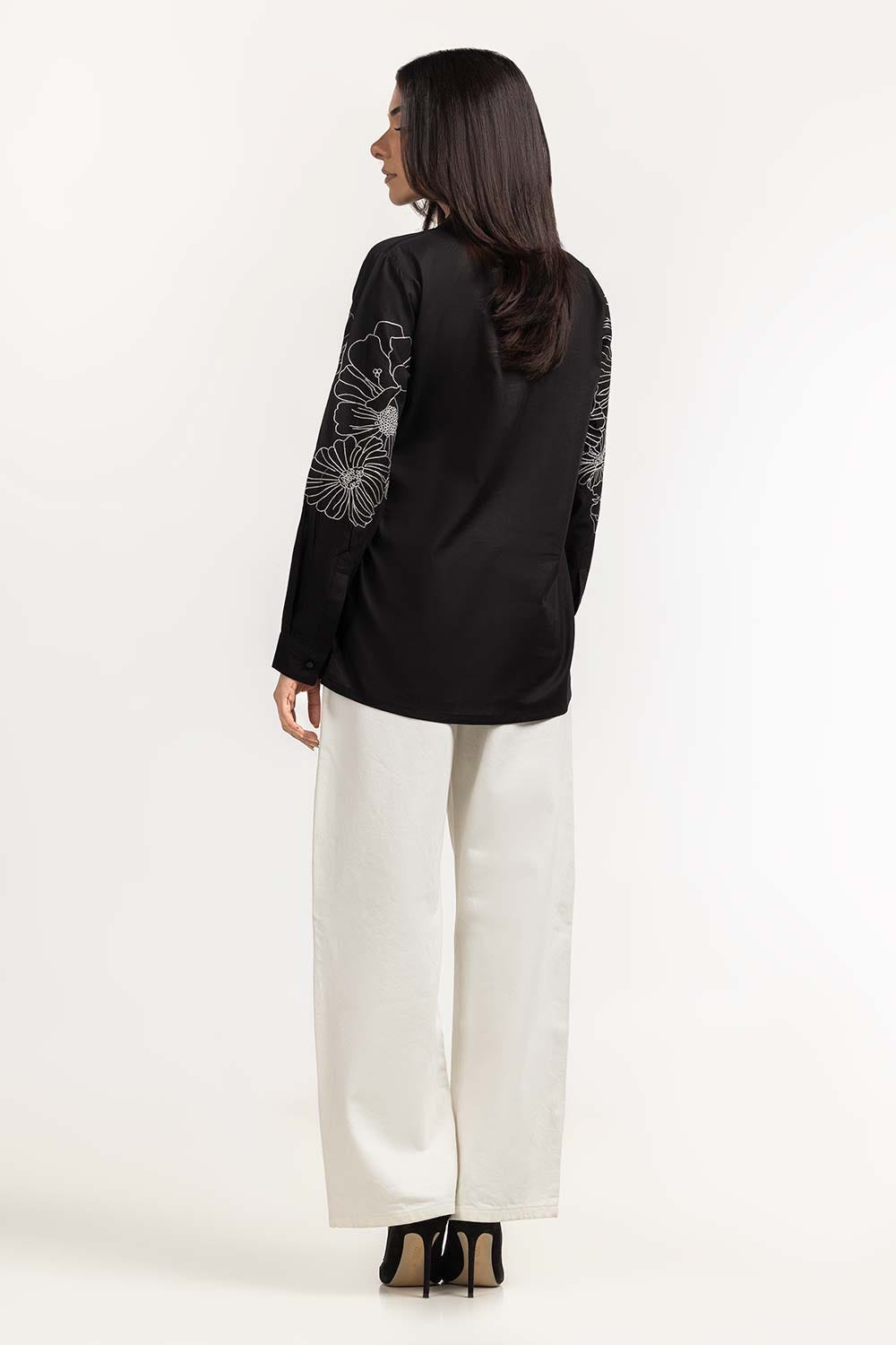 Blouse With Collar And Embroidery Detail On Front And Sleeves.