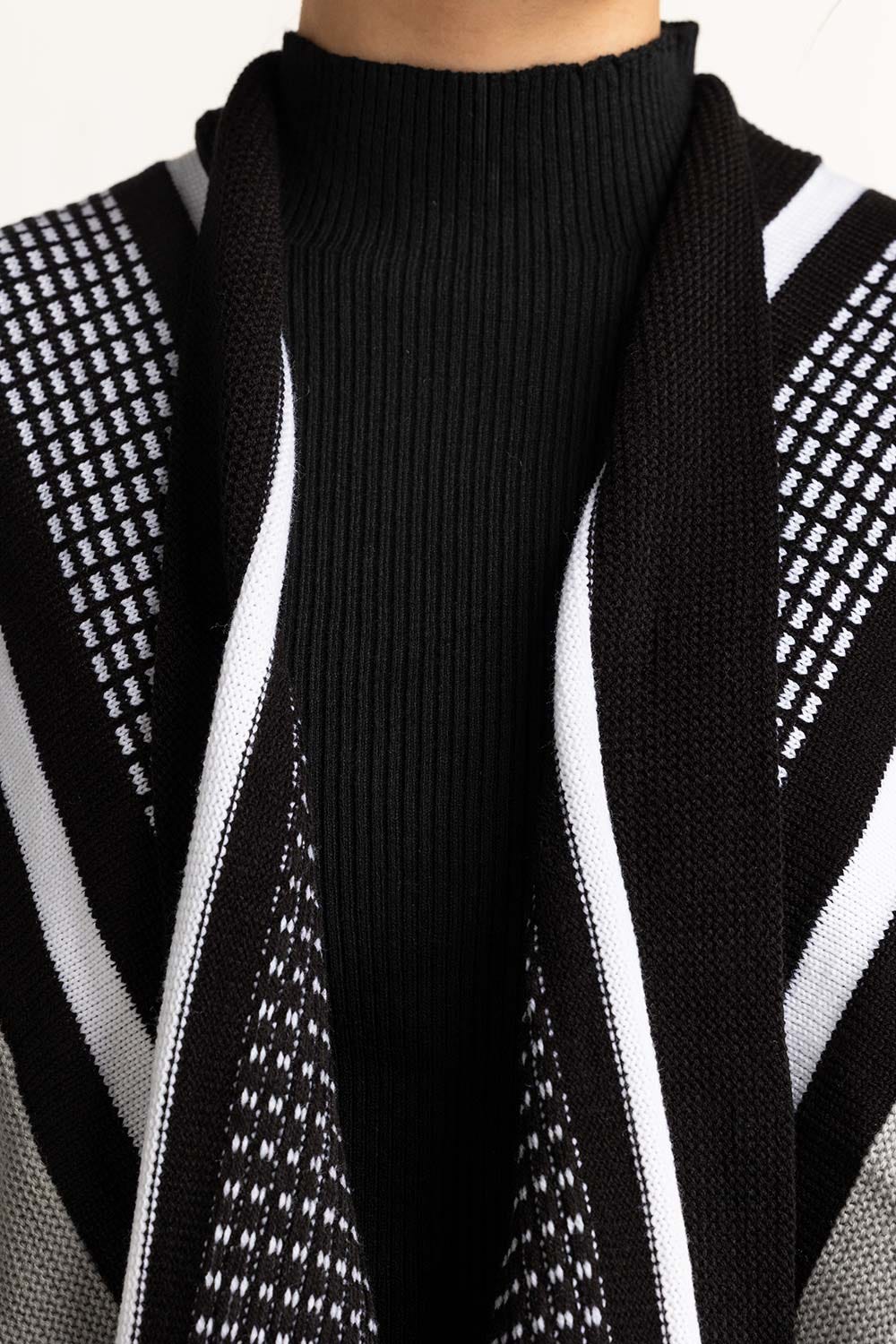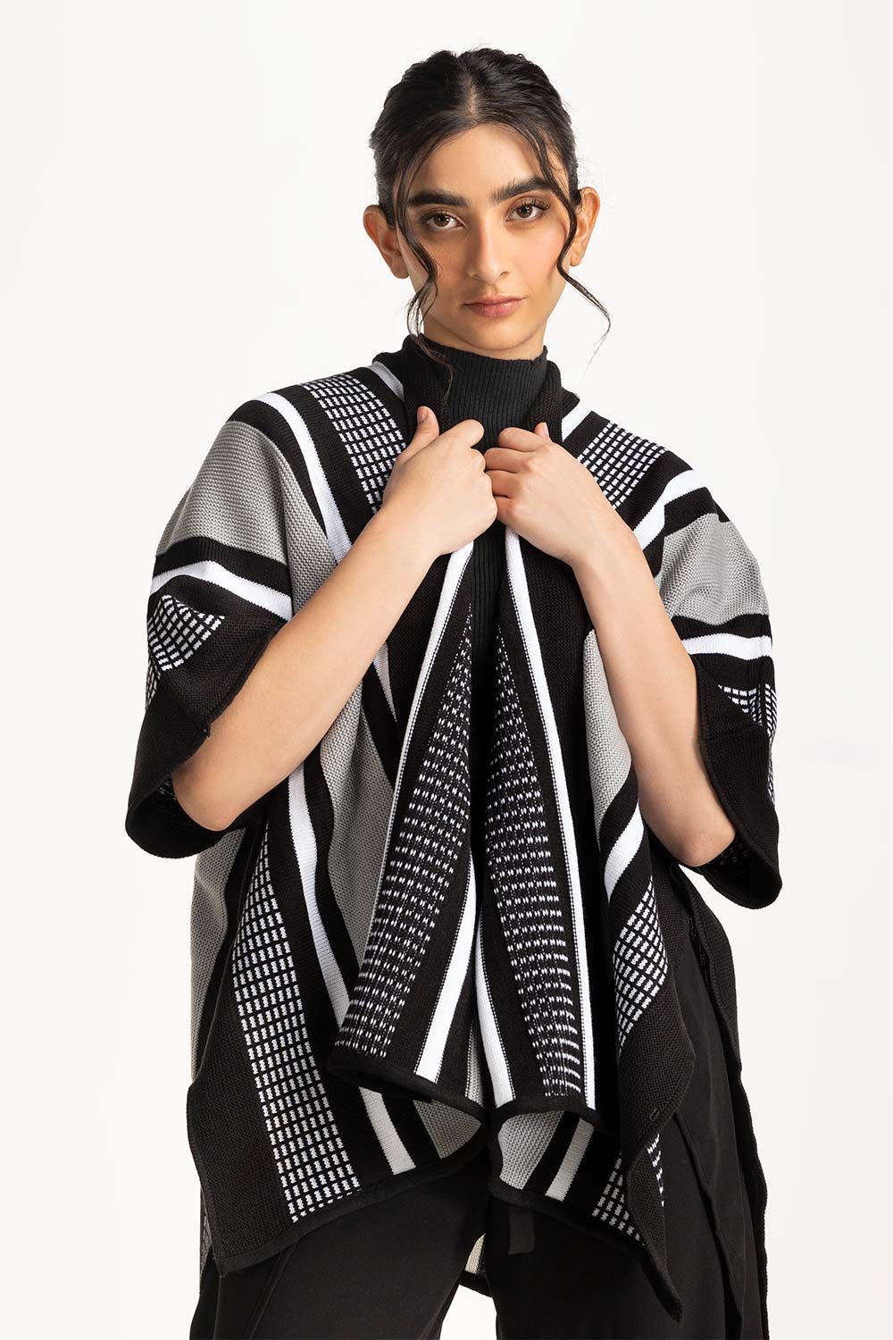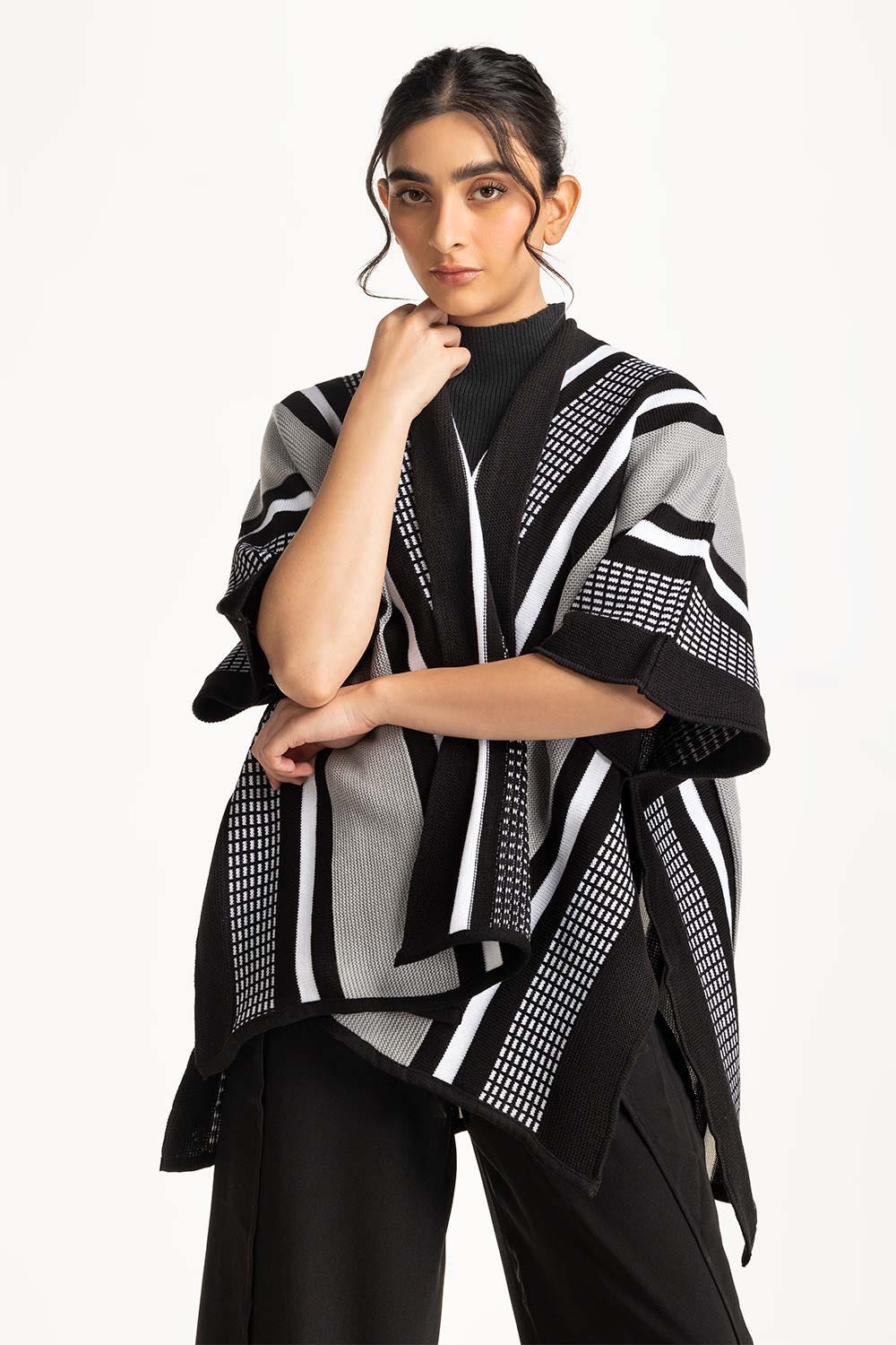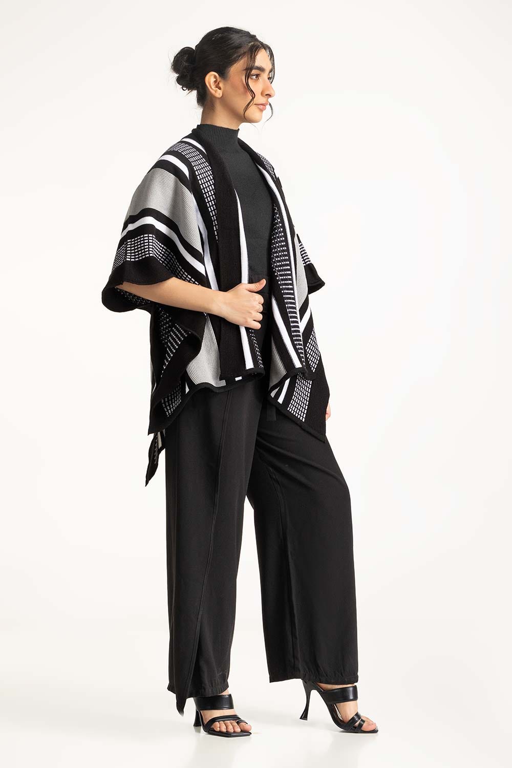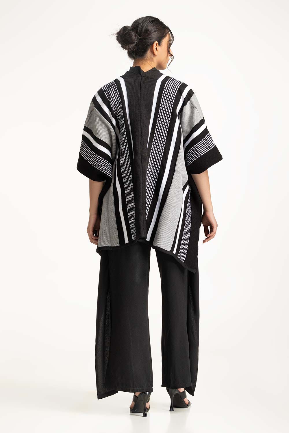 <p>Monochrome striped design cape</p> <p>Width : 24.5 Inches</p> <p>Length : 55.5</p> <p>&nbsp;</p> <p>&nbsp;</p>