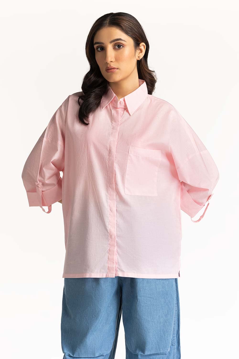 Button down collar shirt with embellishments detail on sleeve and collar.
