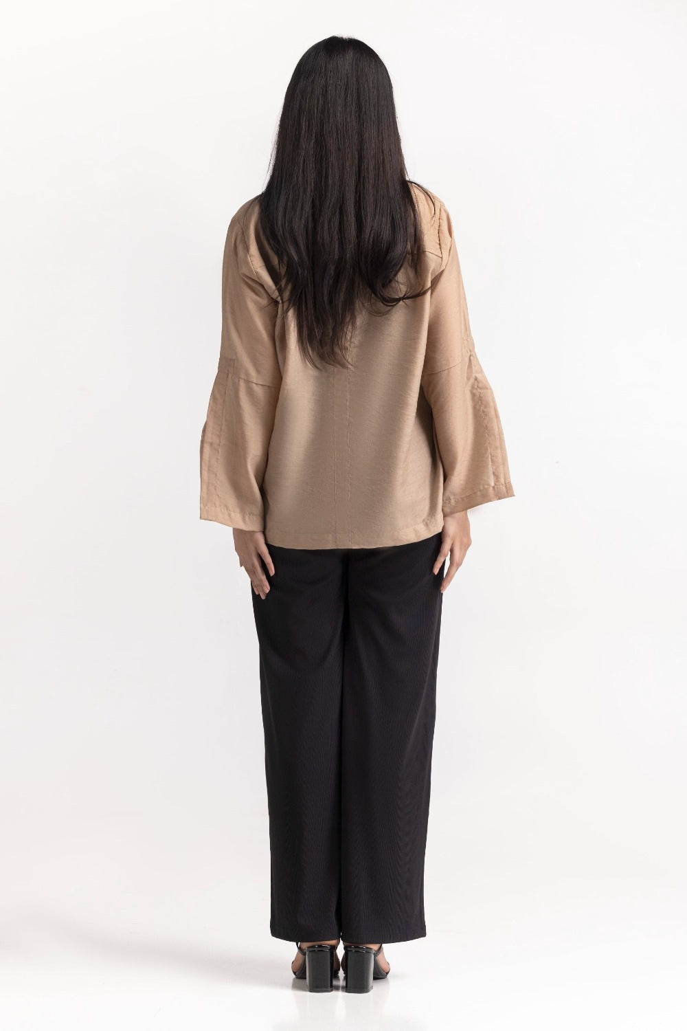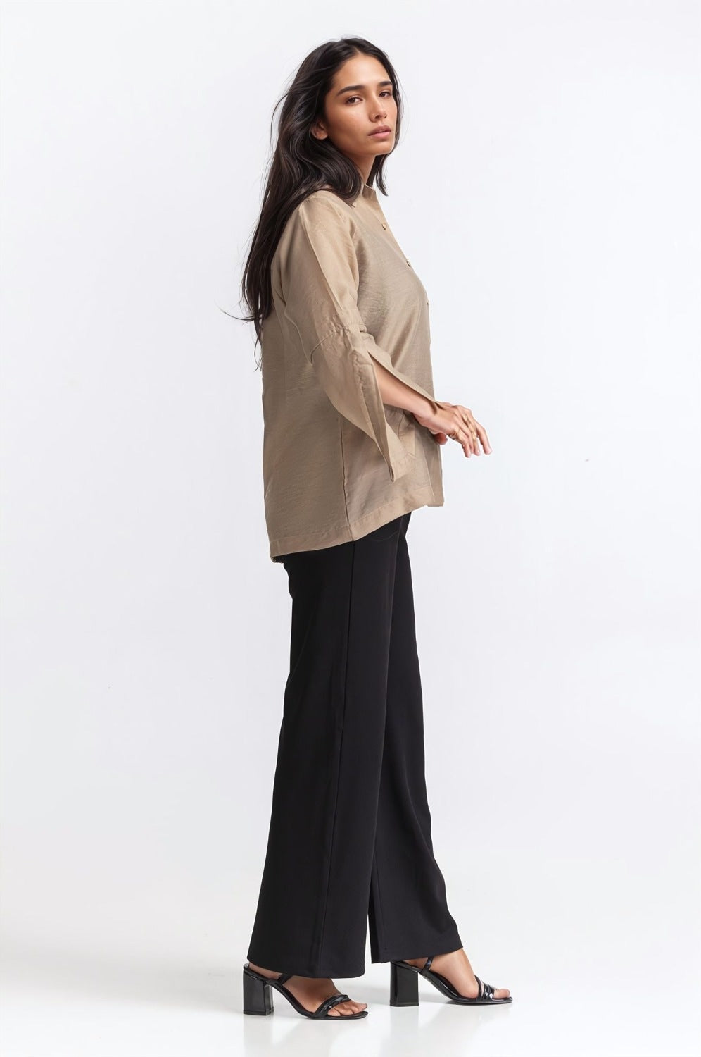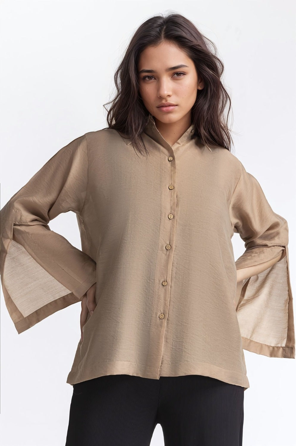 Mid Length Button Down Shirt With Slit On The Sleeves And Placket On The Back