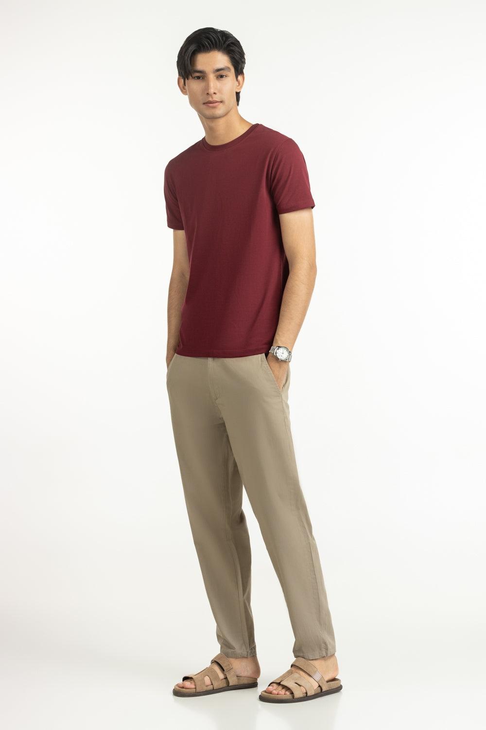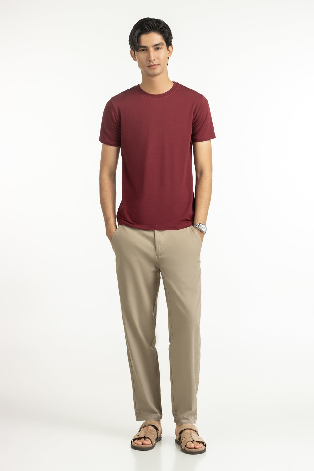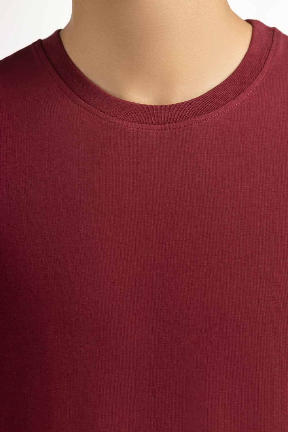 Sleek and structured, this maroon t-shirt offers the perfect balance of style and comfort. The tailored fit defines without restricting, while the airy cotton weave keeps you cool on hot days.
