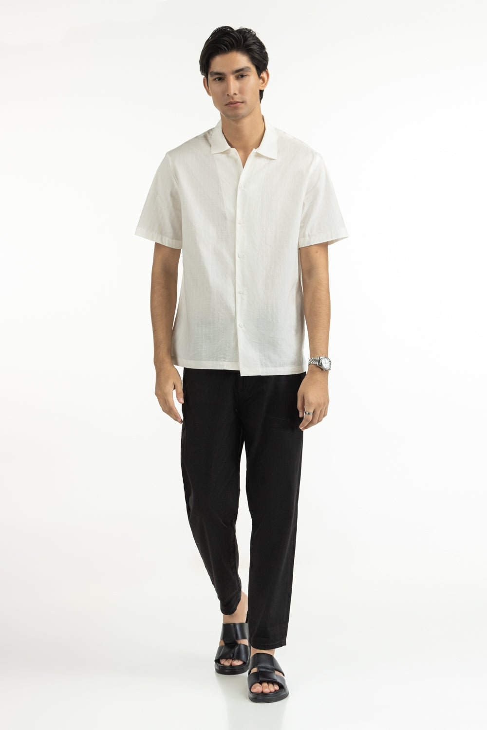 This white shirt blends a subtle textured weave with short-sleeves, for effortless summer sophistication. The regular fit strikes a perfect balance between ease and precision, while breathable fabric keeps you cool during harsh summer.