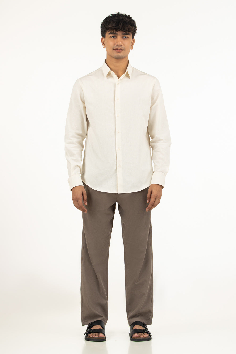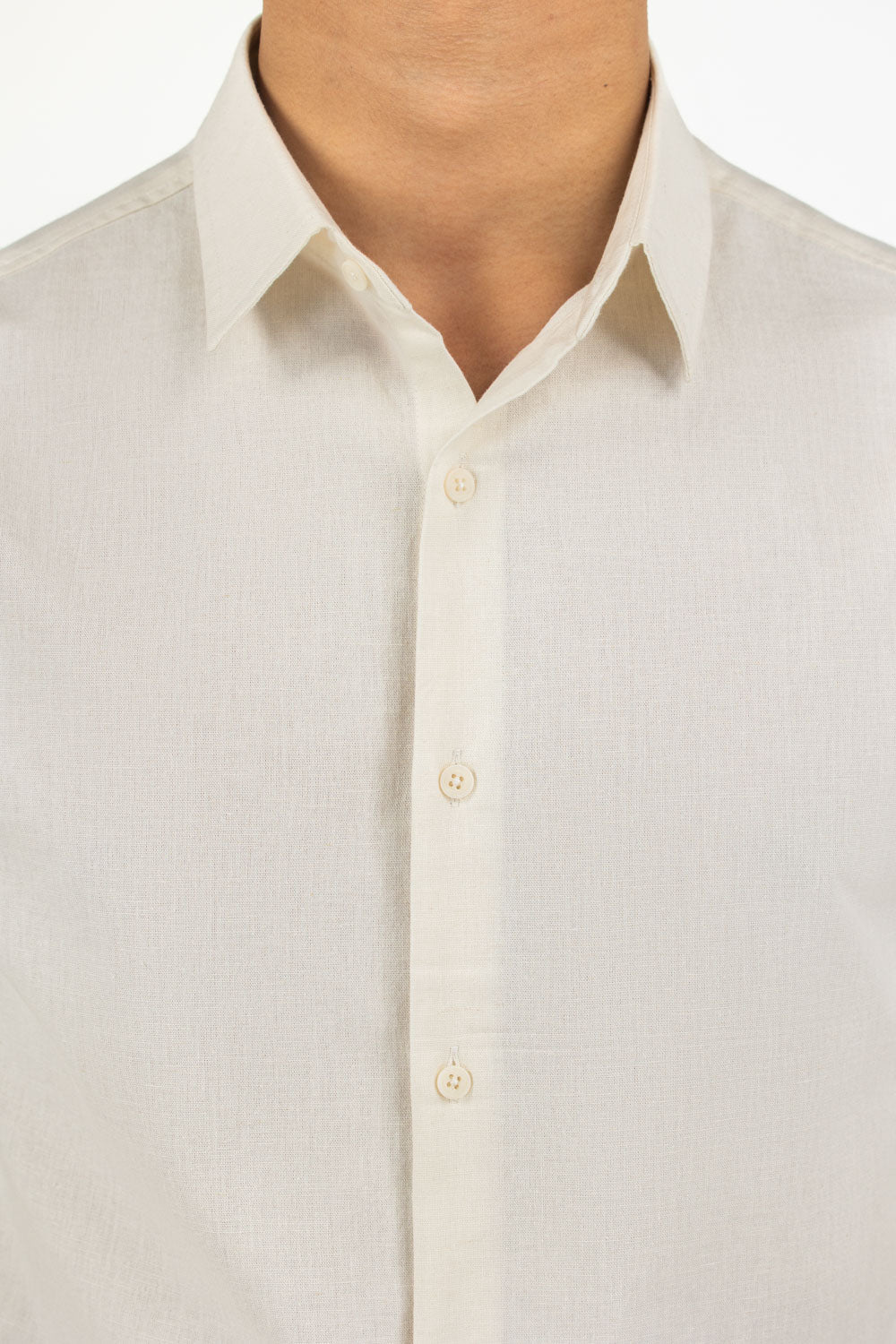 Designed using a soft cotton-linen blend, this regular fit casual shirt offers excellent breathability with smooth texture. The refreshing Snow-White color positioned within the overall styling tone enhances its clean and sophisticated summer appearance.