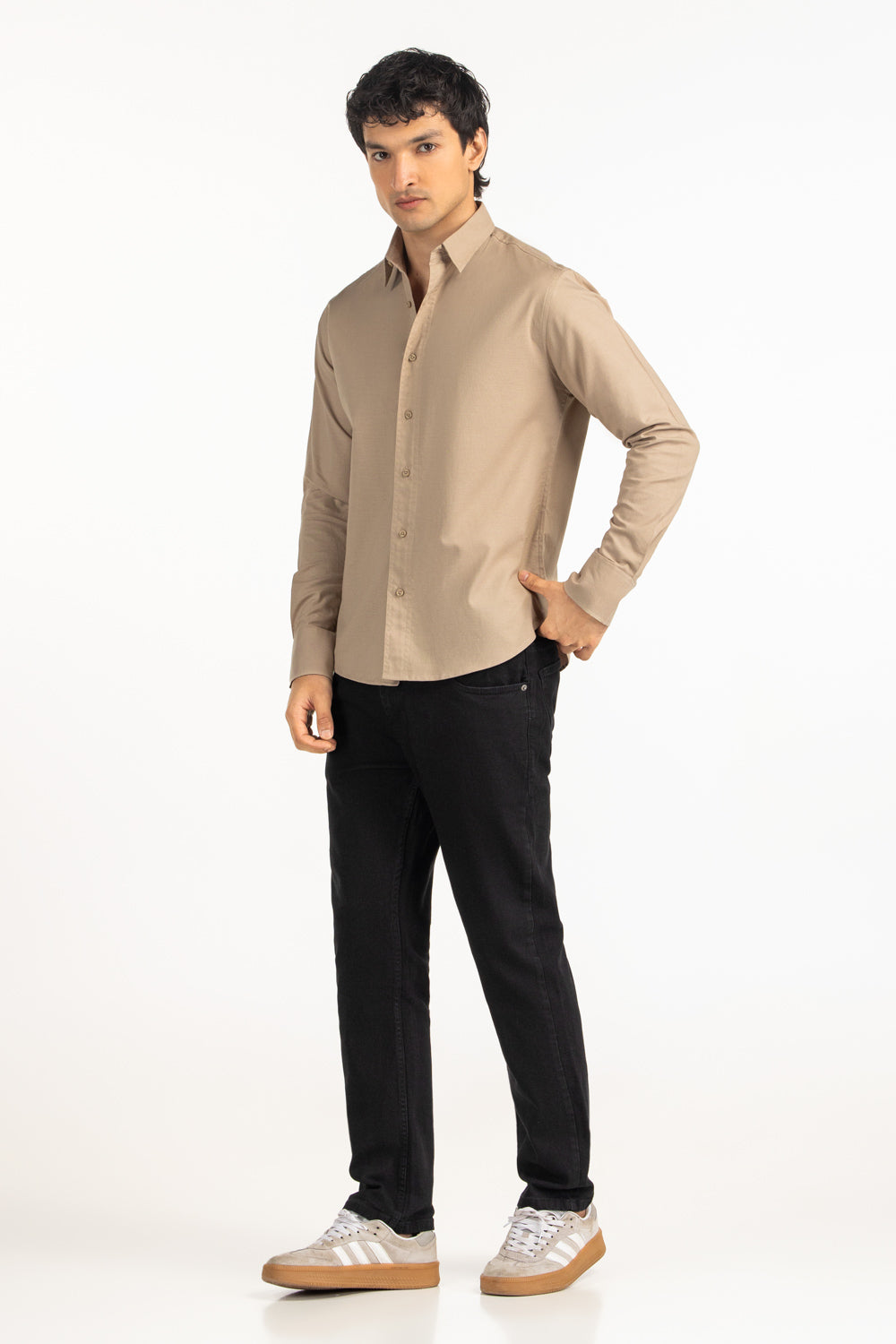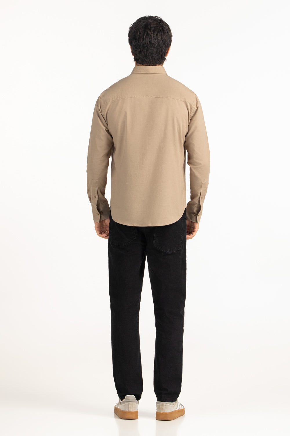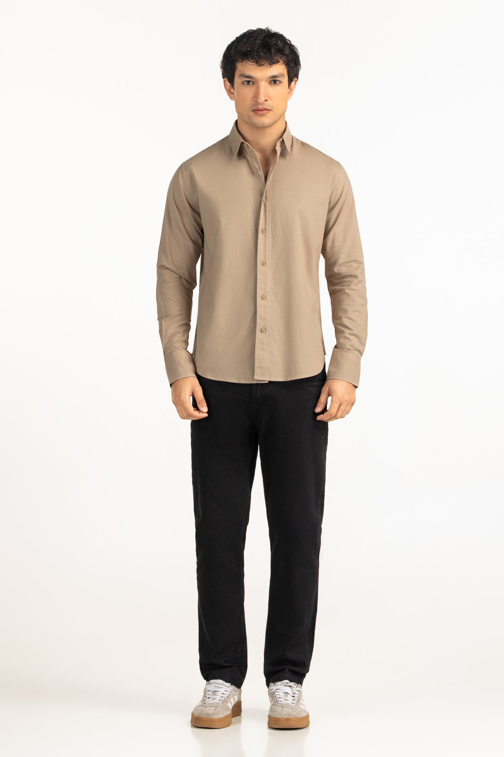 Crafted from high-quality 100% cotton fabric, this regular fit casual shirt ensures superior comfort with natural breathability. The classic Stone color highlighted within the styling tone enhances its timeless and clean casual appearance.