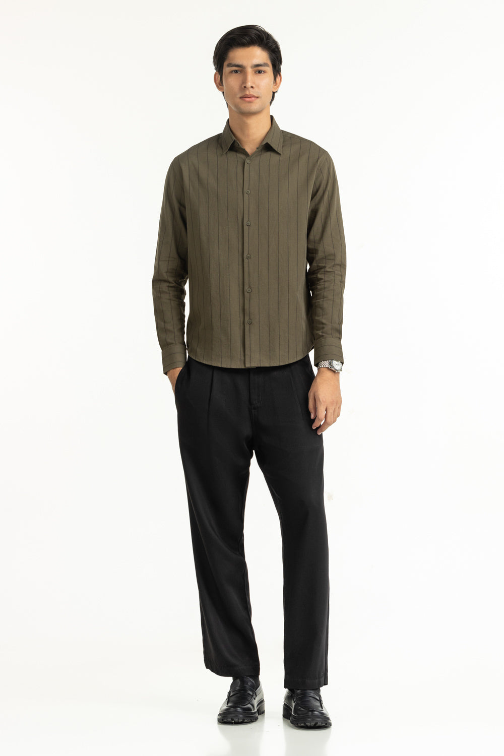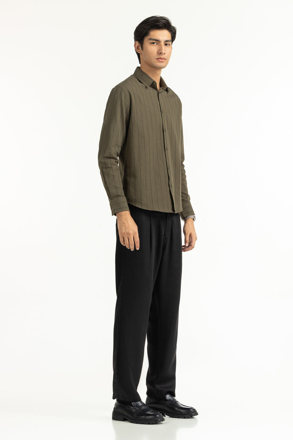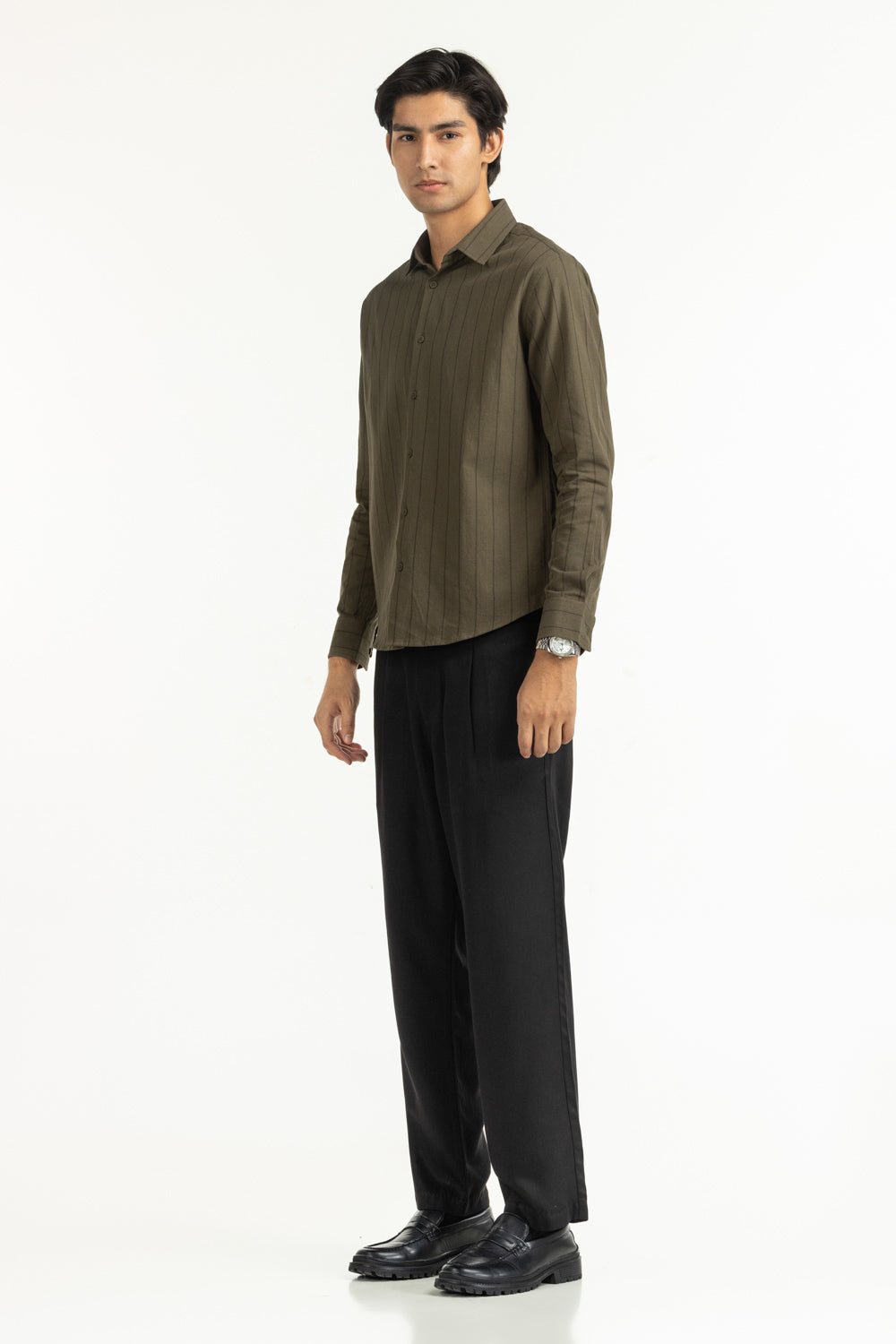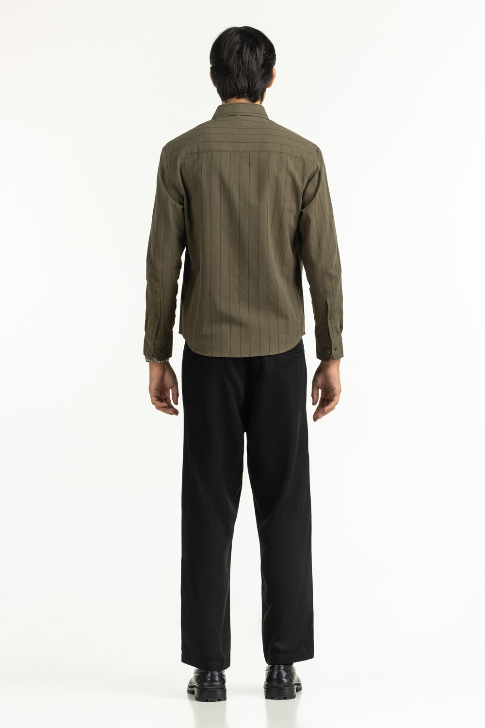 This shirt blends breathability with its subtle striped texture. The fabric’s fluid fall ensures comfort without compromising on its contemporary look. Built for men who prefer effortless elegance in everyday wear.