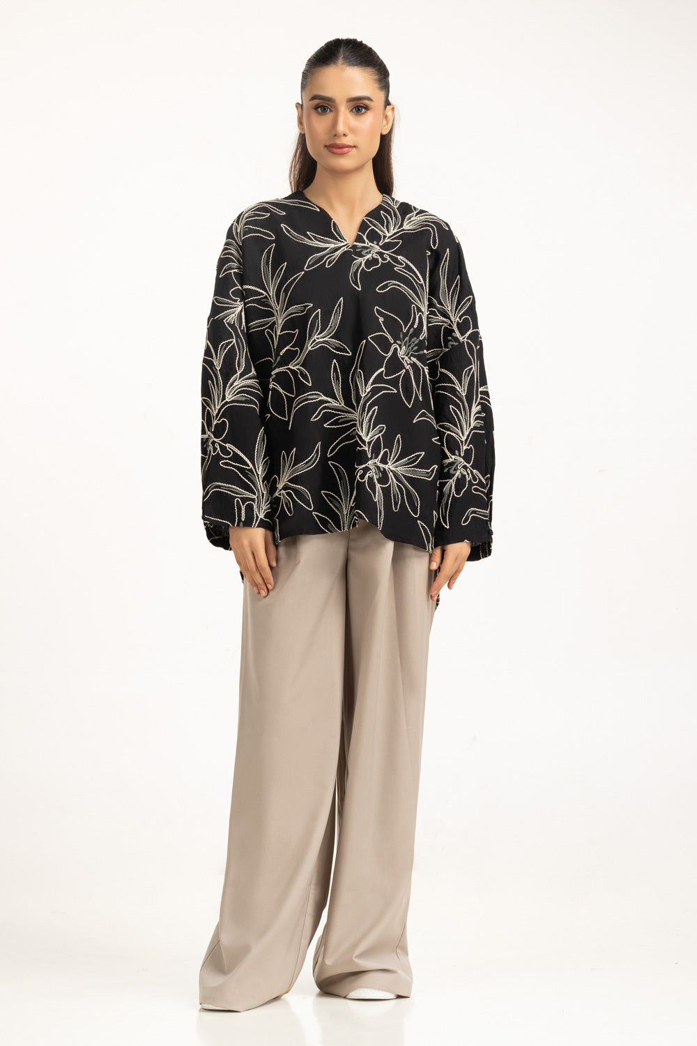 This embroidered shirt in a regular fit brings modern charm to your winter dressing. Its contemporary detailing makes it versatile enough for casual pairings with loose trousers. A refined design for women who value comfort without compromising style.