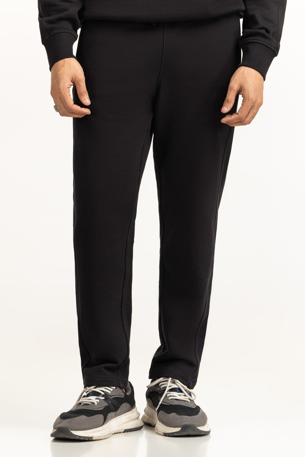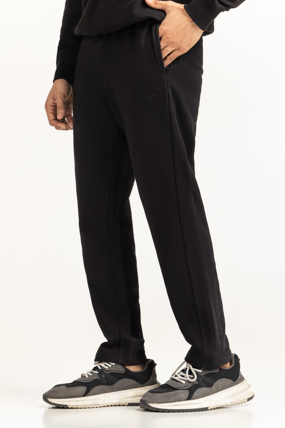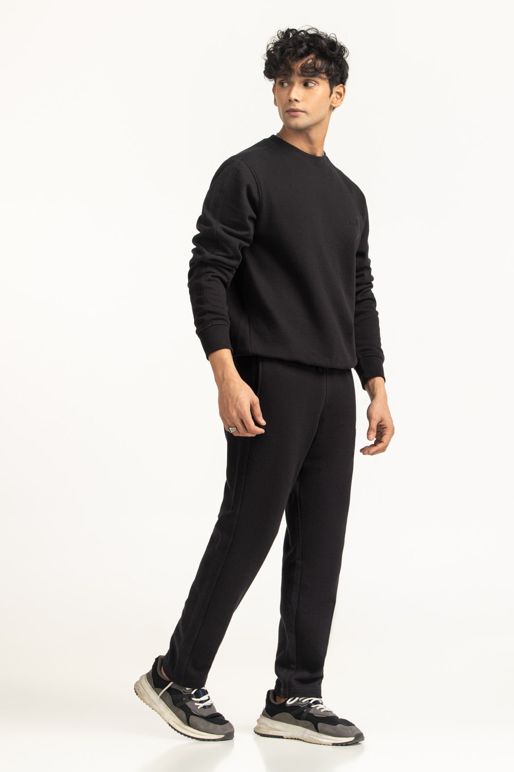 A sleek black Co-Ord set crafted in a regular fit with a warming fabric for smooth winter comfort. Designed with structure for a unified, modern silhouette. The perfect go-to for travel, lounging, or quick outings.