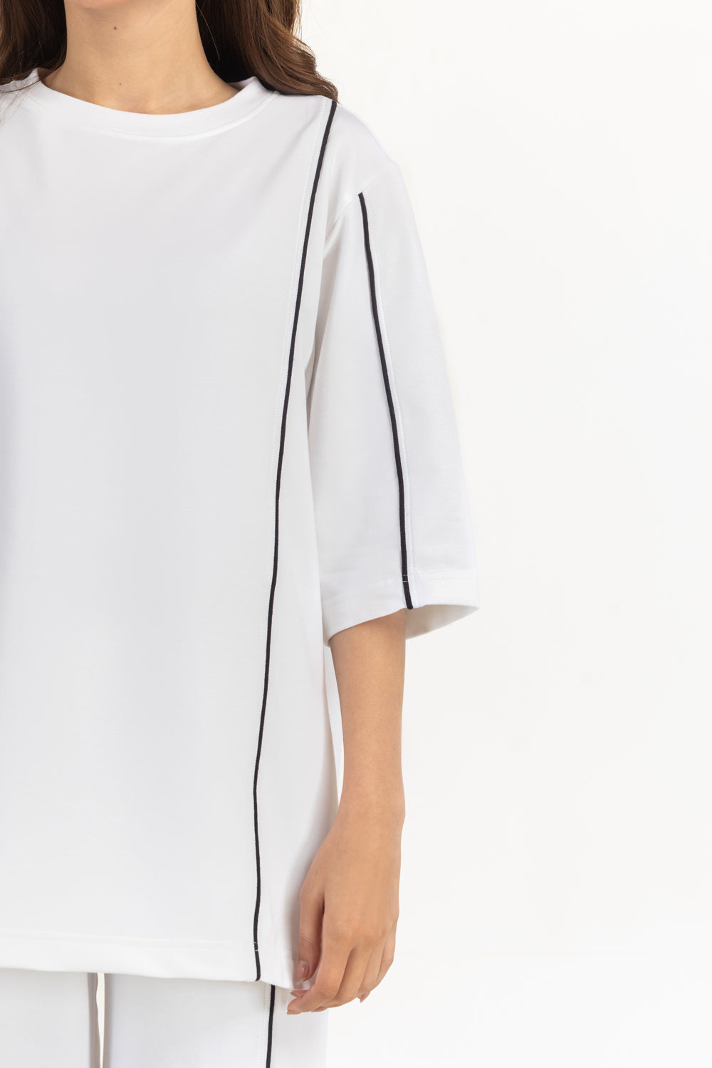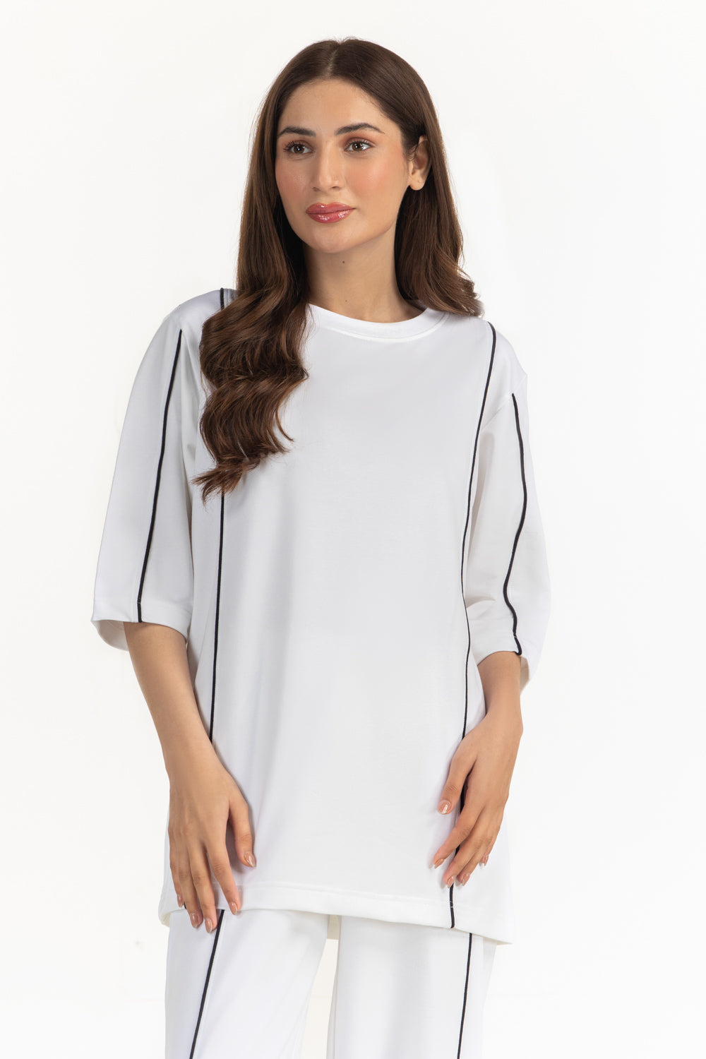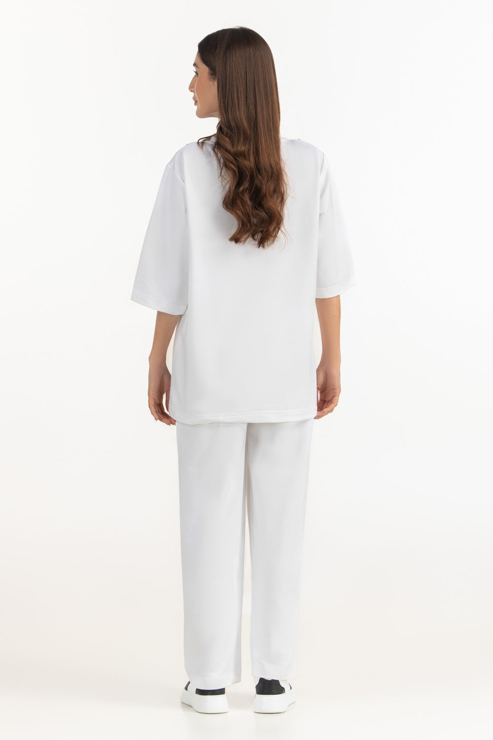 Constructed using premium cotton-polyester blended fabric, this regular fit co-Ord set provides lightweight comfort with refined finishing. The elegant white color placed within the design tone enhances its fresh and minimal summer styling.