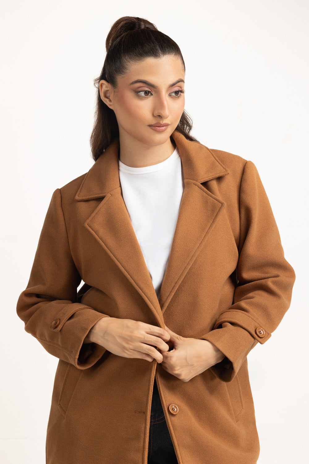 This long wool coat brings a quiet elegance to your winter dressing, shaped in a regular fit that allows room for layering without feeling bulky. It’s warm, earthy palette pairs easily with denim, knits, or Co-Ord sets, making it a practical pick as your everyday winter companion.