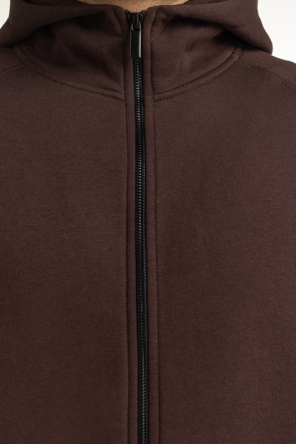 Balanced between cozy and contemporary, this coffee-brown hoodie with a zipper front, offers a perfect mix of warmth and minimalism. While the structured fit adds polish to casual moments.