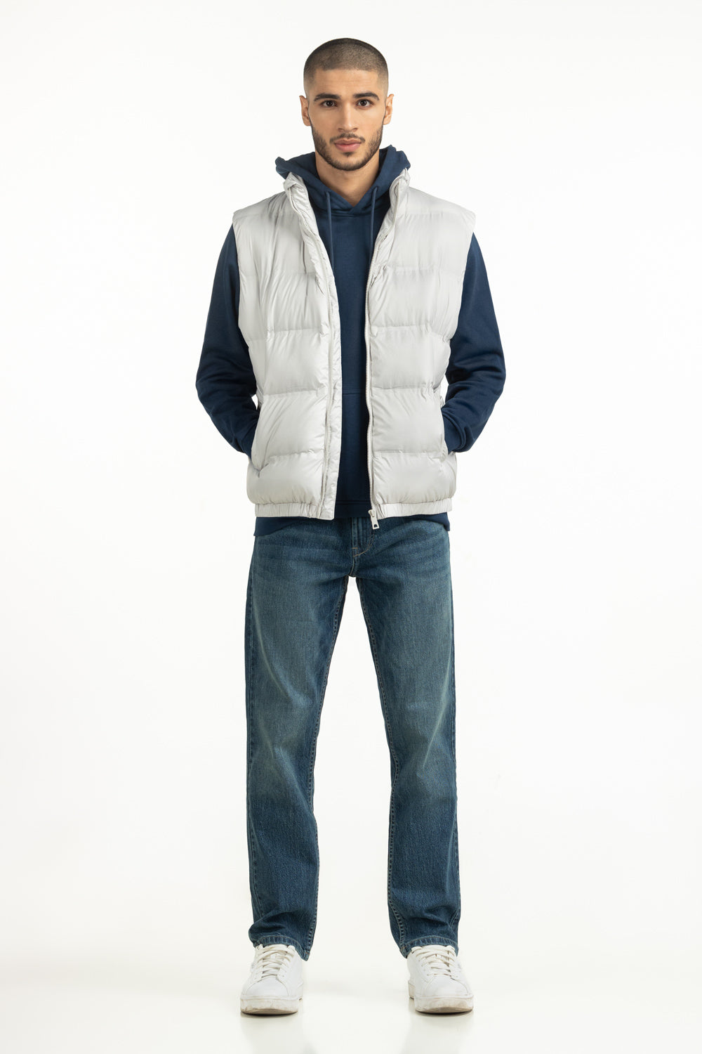 This sleeveless puffer jacket captures contemporary elegance with a sporty undertone. Its regular fit and functional side pockets make it both practical and stylish, offering easy layering for cold days.