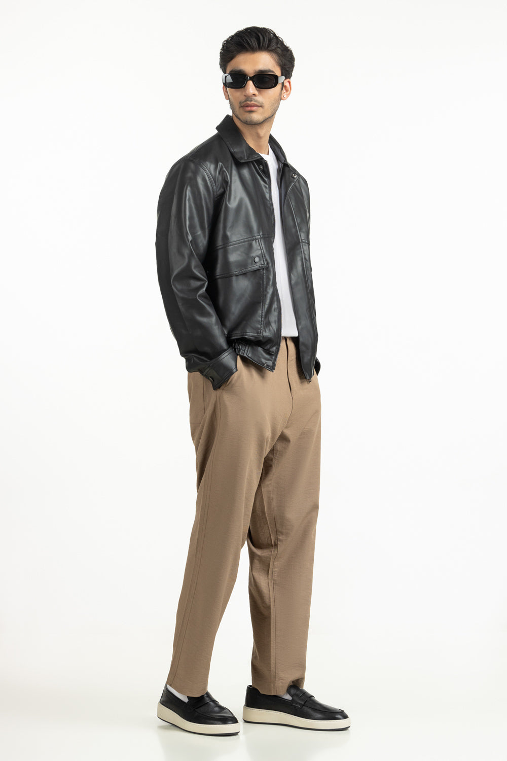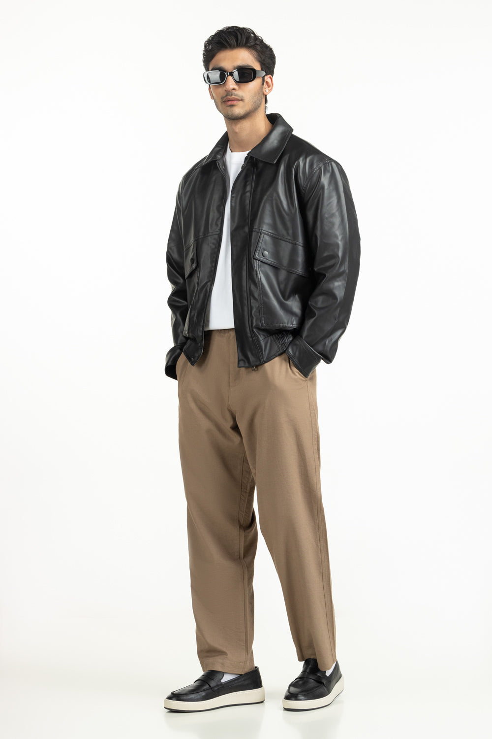 Channel a bold, youthful aesthetic with this contemporary jacket. The leather-like finish exudes an edgy, elegant vibe, while the functional zip front and dual pockets provide modern practicality. An elasticated waist ensures a snug fit, keeping you warm and poised for any occasion this season.