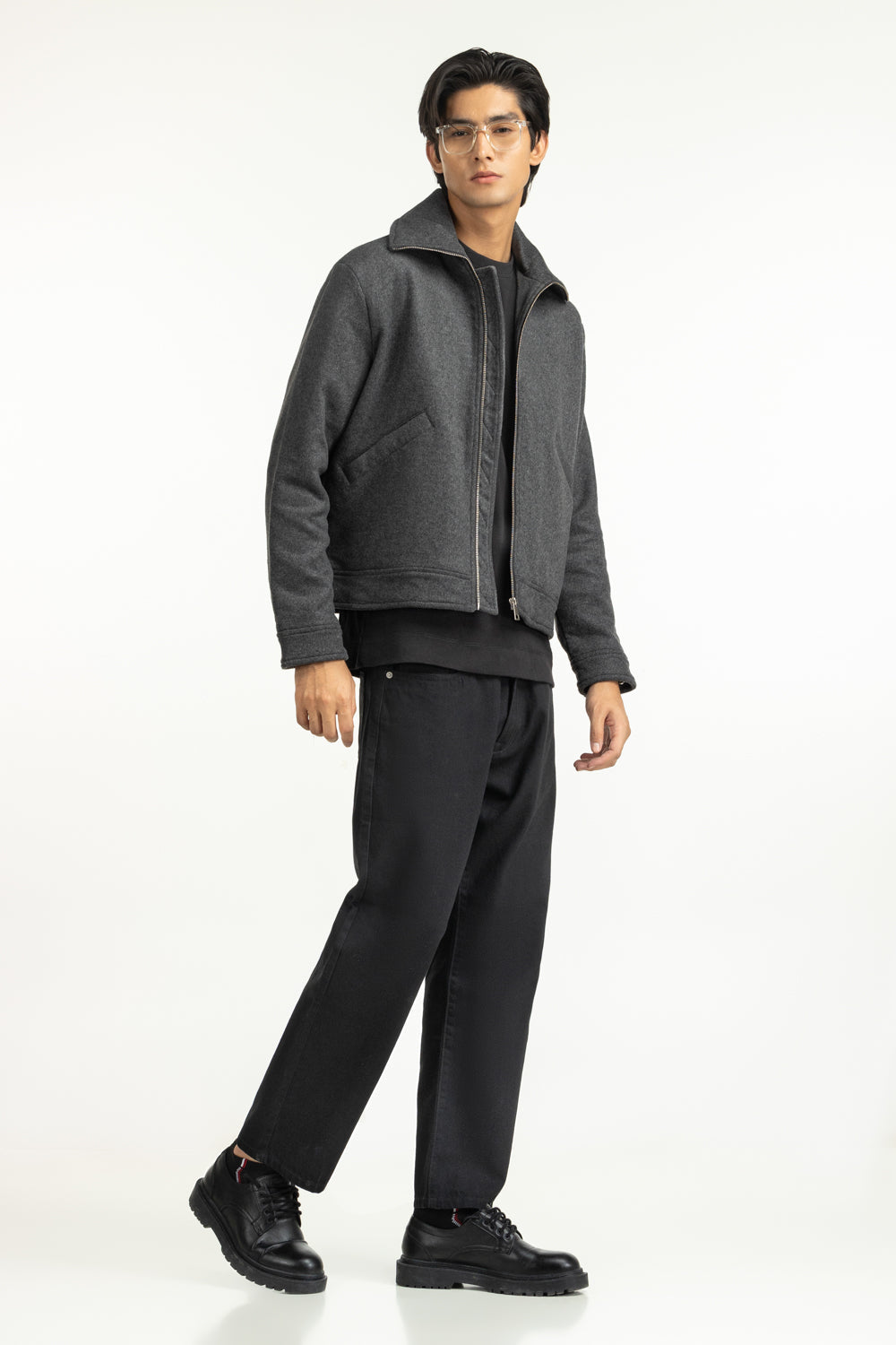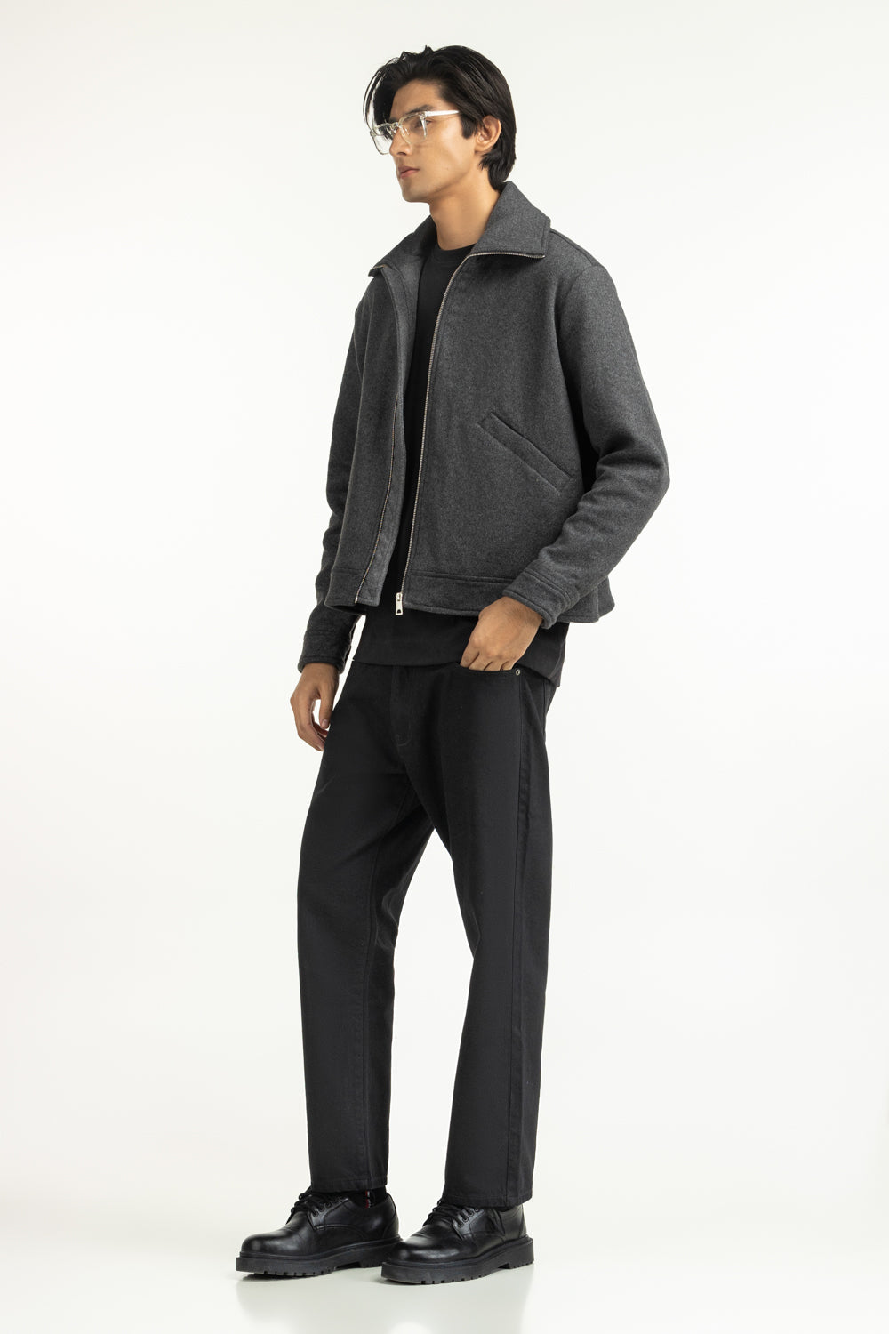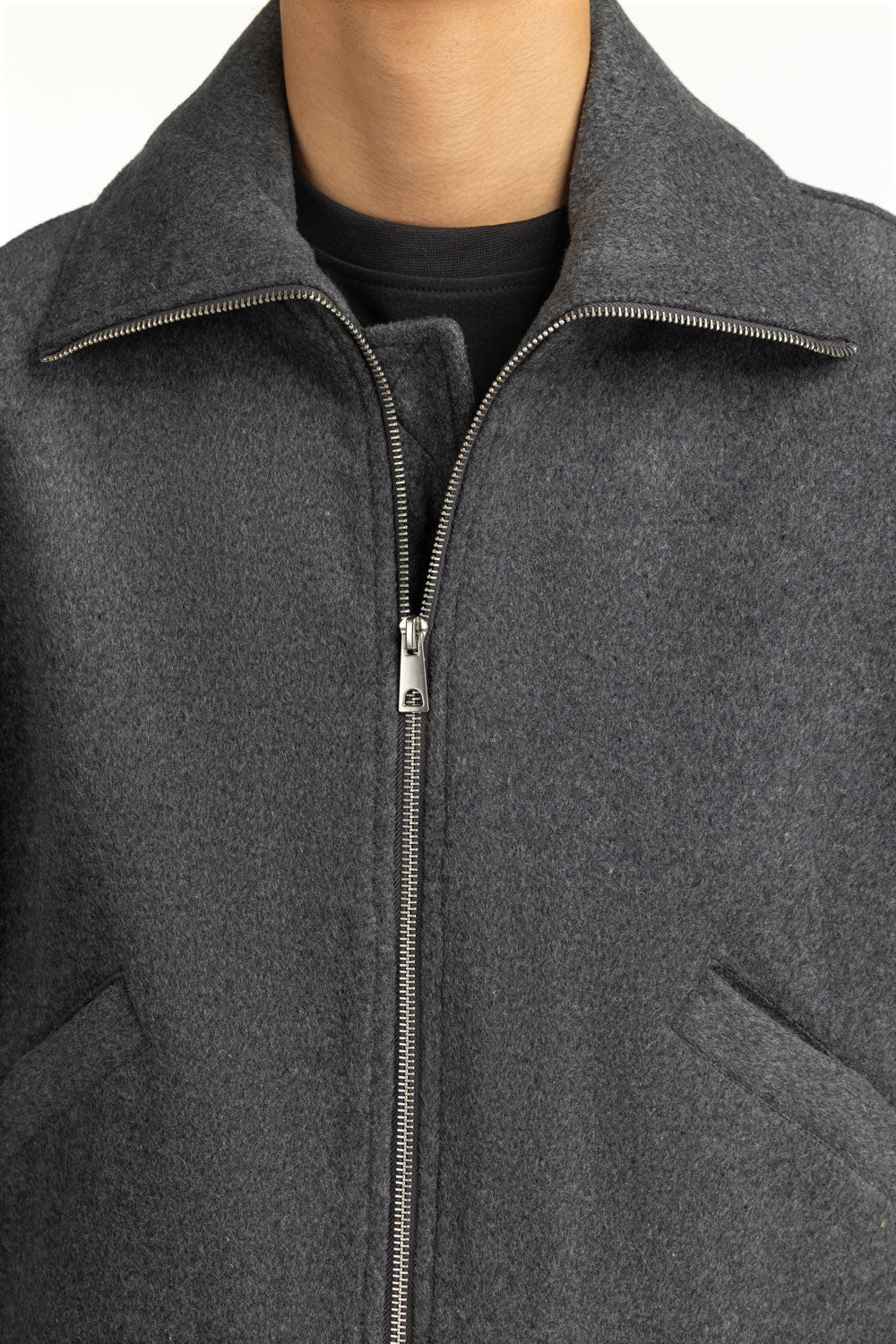 Look your best in this stunning grey jacket, featuring a structure collar with two side pockets and and a zipper front. The silhouette looks modern, while the fabric feels premium.