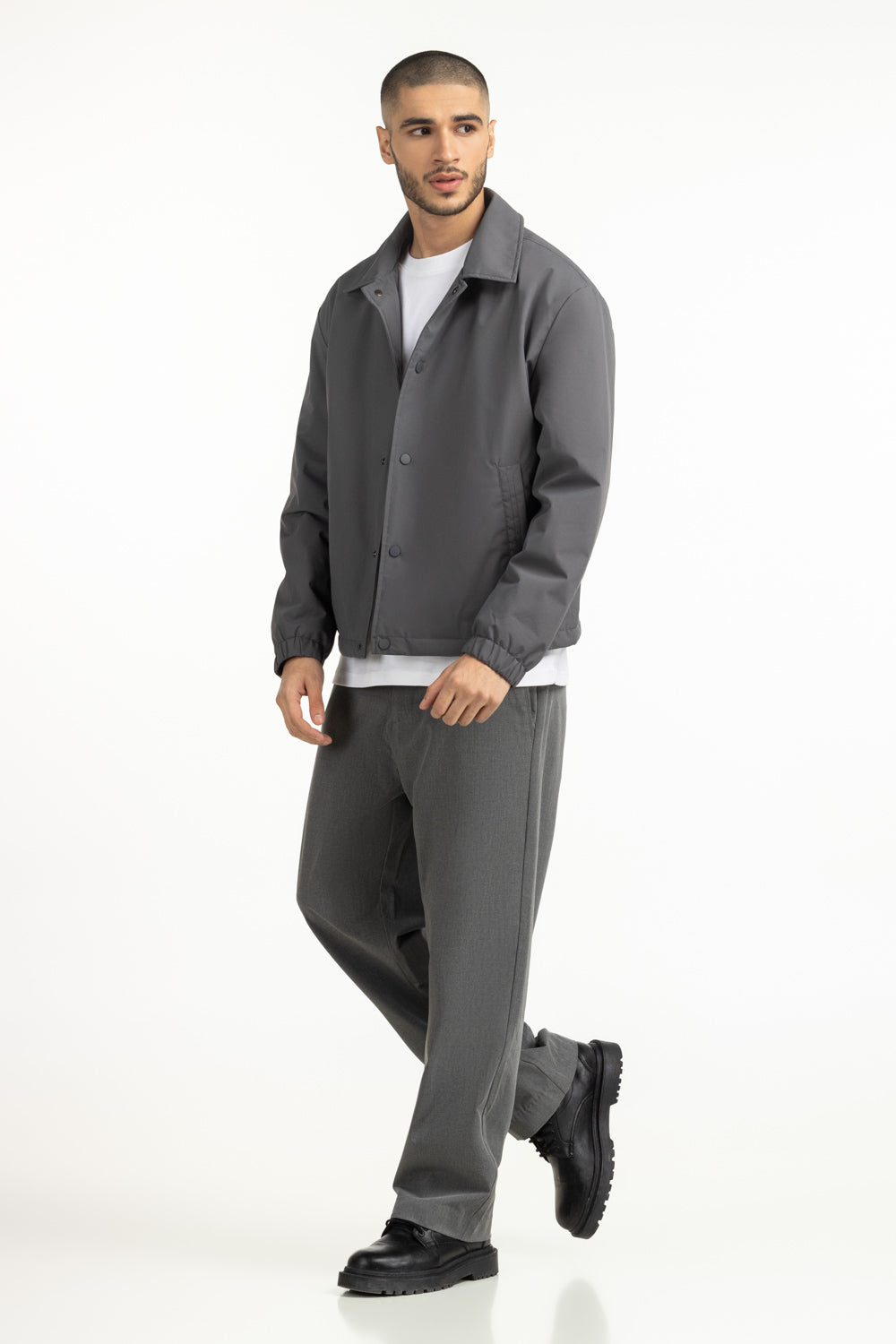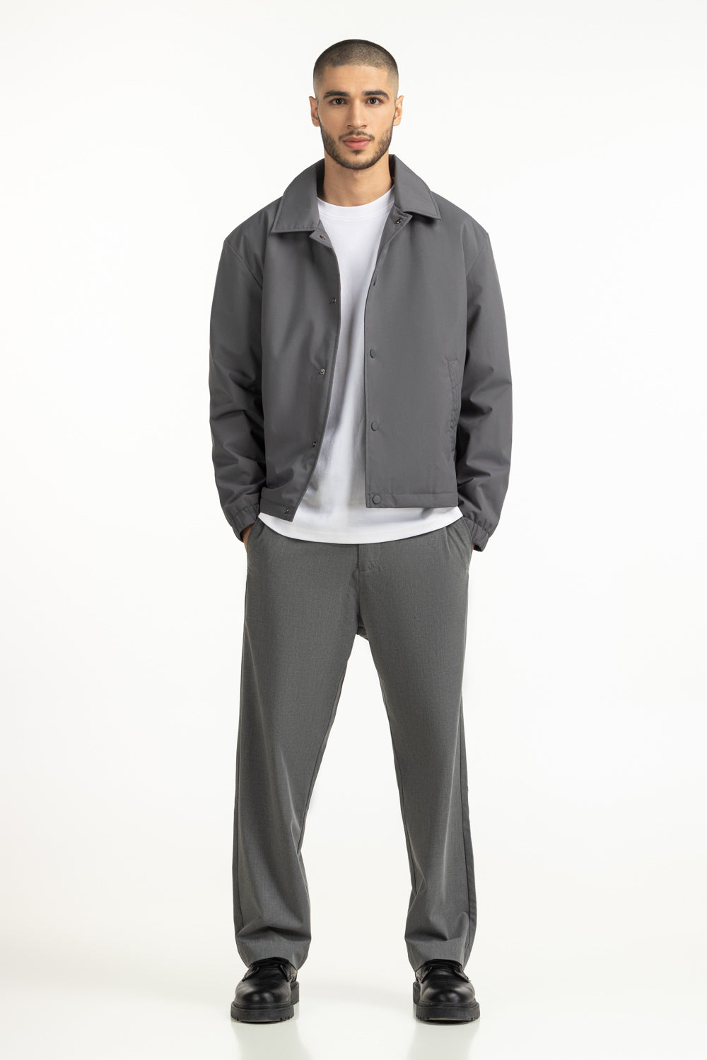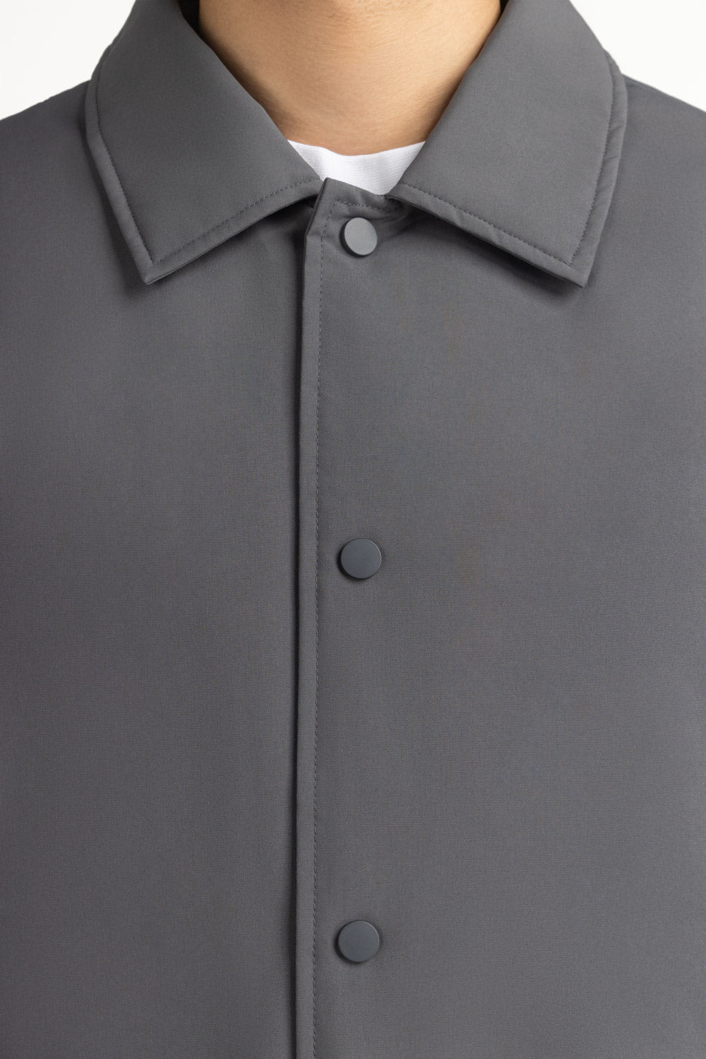 Minimalist design features this soft grey button-down jacket with a regular fit and functional side pockets, that combine modernity with comfort seamlessly. A timeless addition to a wardrobe built for versatile, stylish winter wear.
