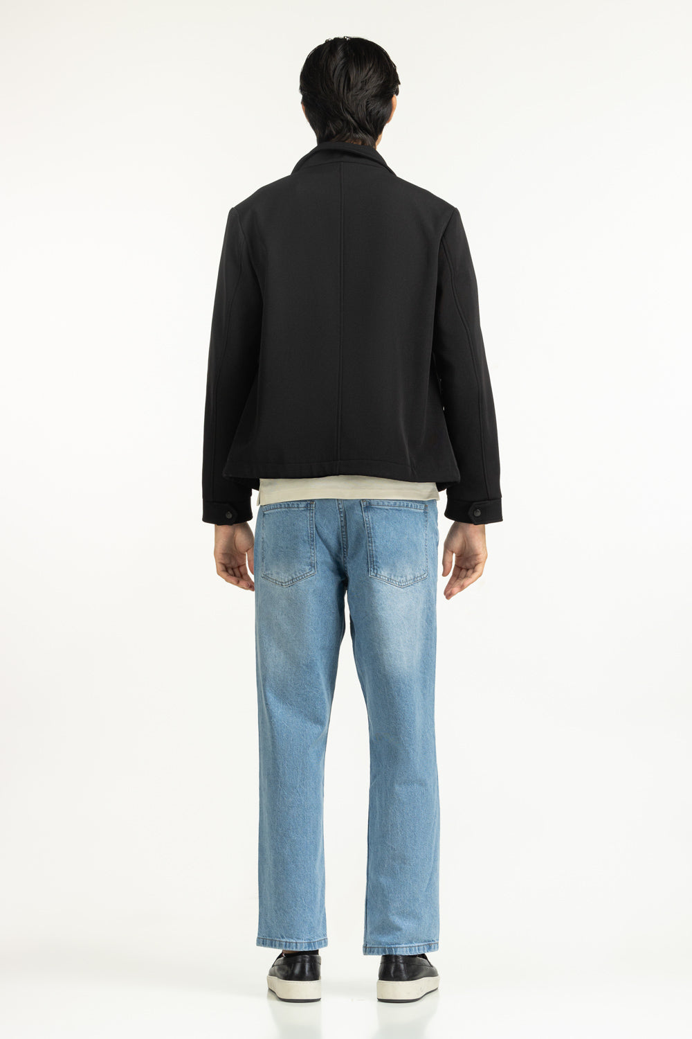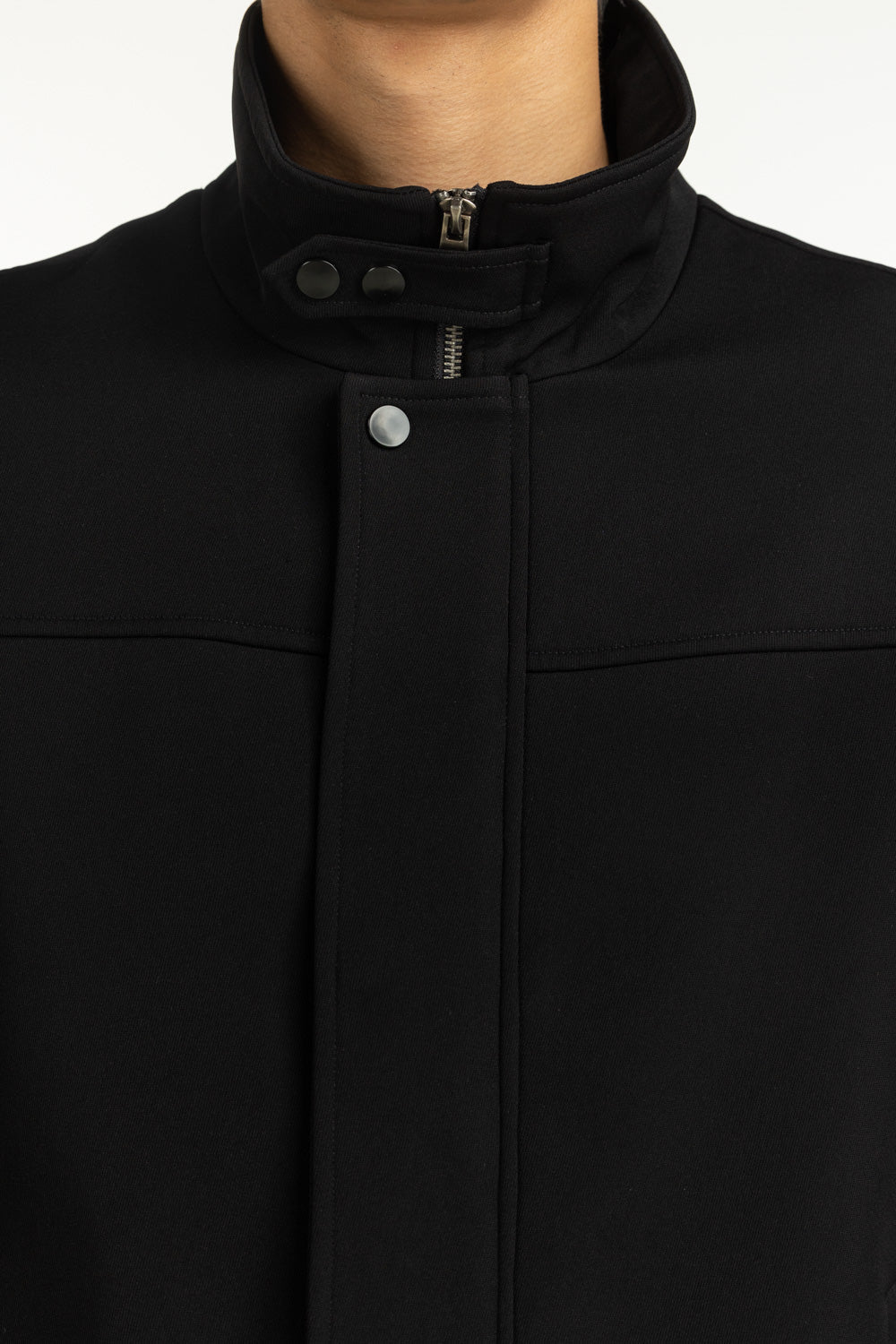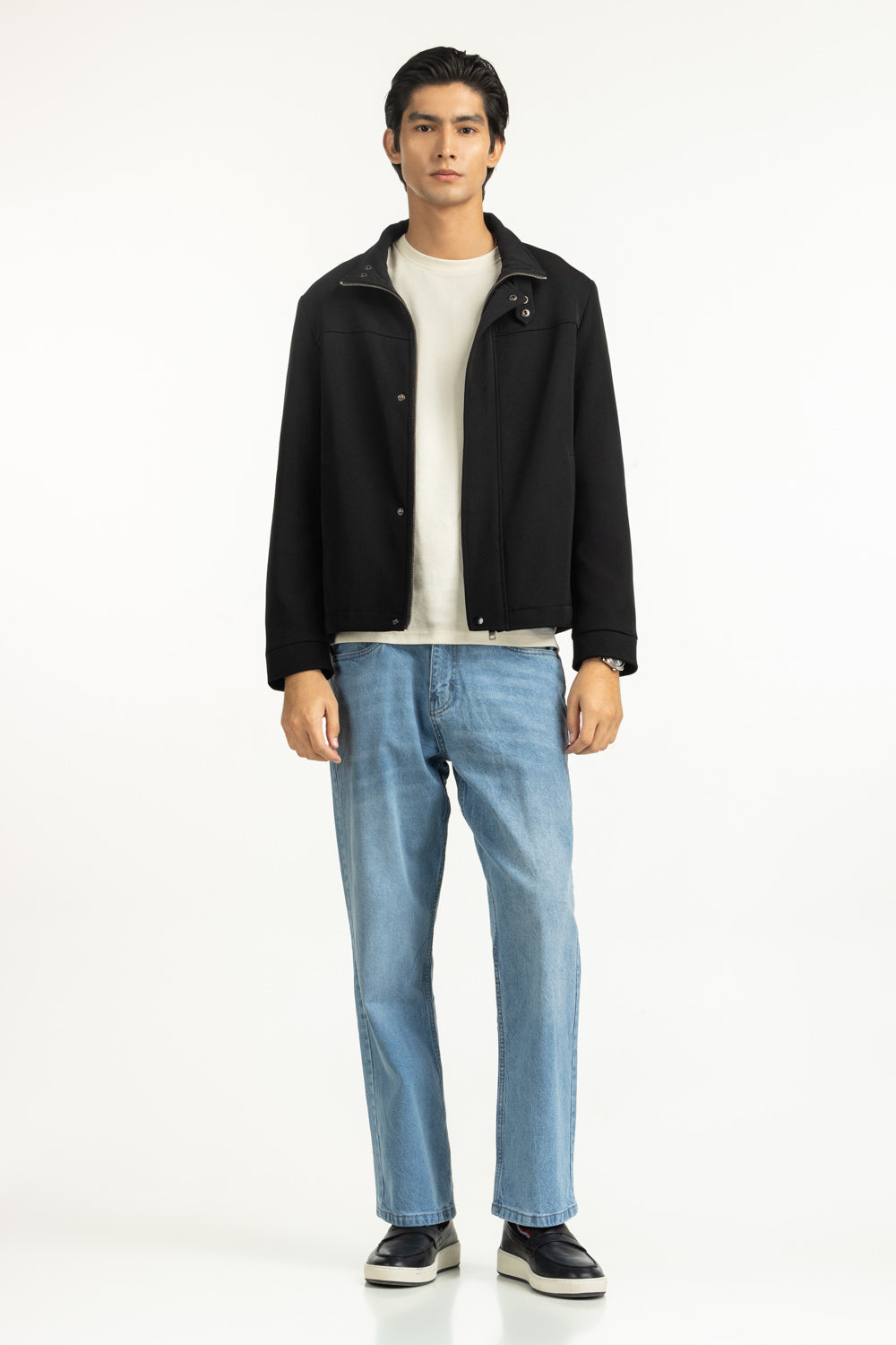 Sleek and forever classic, this jacket in black is finished with a zipper front under a button placket for added warmth. The regular fit ensures layering feels natural, whether casual or refined.