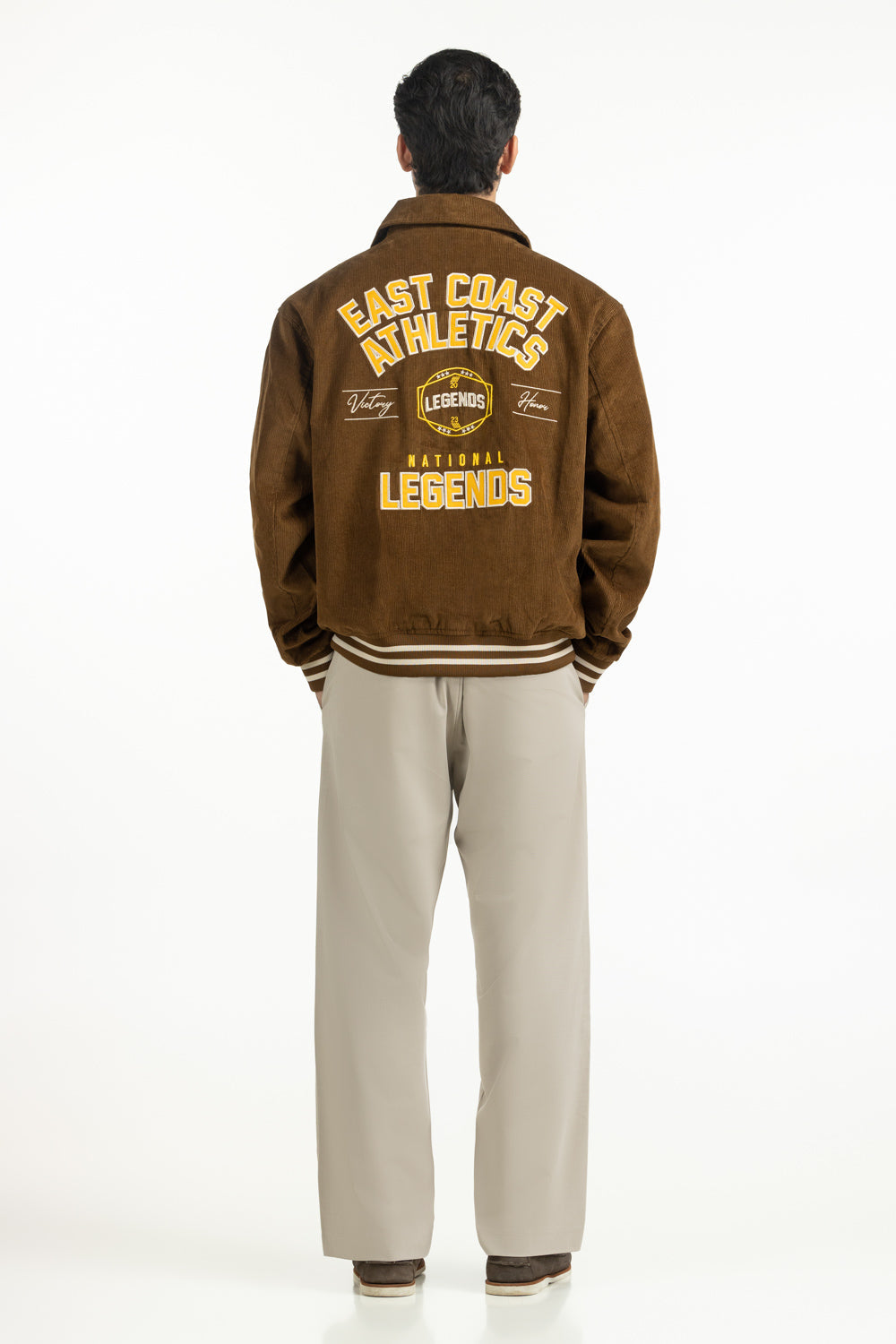 Designed for the urban gentleman, this brown jacket offers a flawless regular fit and an exquisitely soft feel, perfect for navigating the winter season. The practical twitch button front and dual side pockets add to its functionality, while the detailed embroidery on the back adds a unique, elegant flair.
