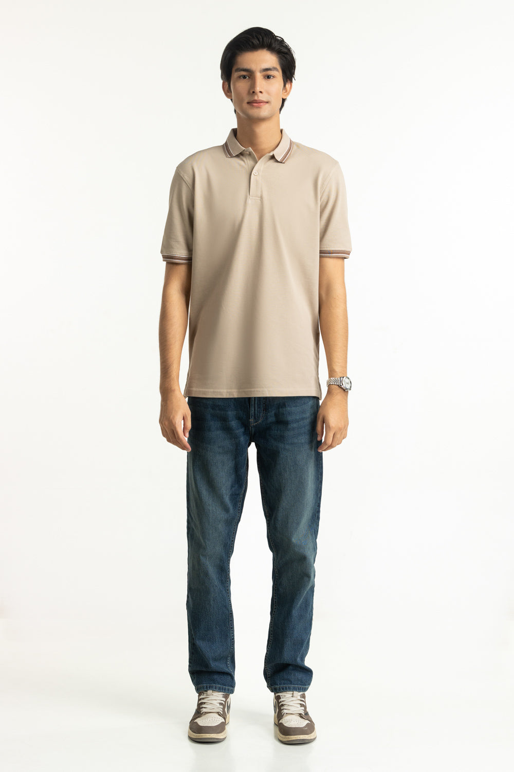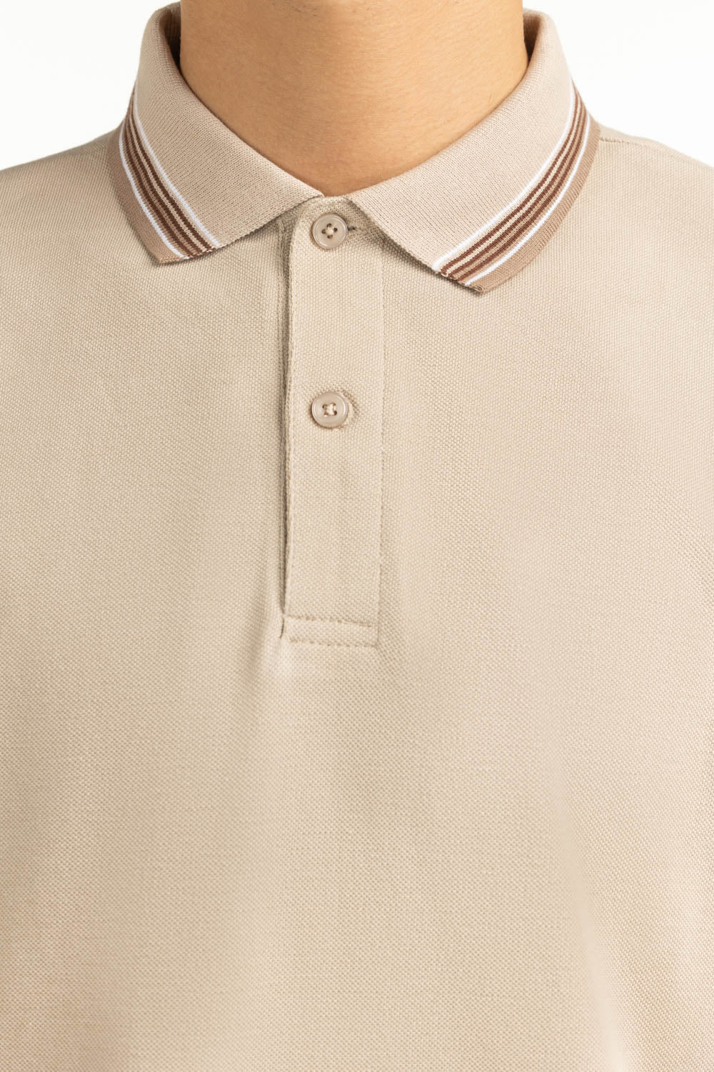 Crafted in a calm, understated hue, this polo channels sophistication for the modern man. The soft, breathable texture promises day-long freshness. While its buttoned neckline and relaxed fit give a refined edge to casual styling.