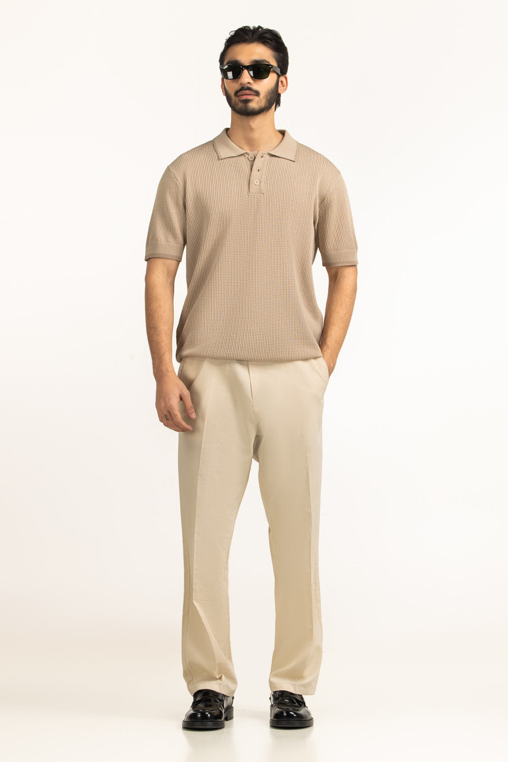 Lightweight sand-colored polo made from 100% viscose for smooth comfort. The sand regular fit design ensures a breathable and stylish look for casual wear.