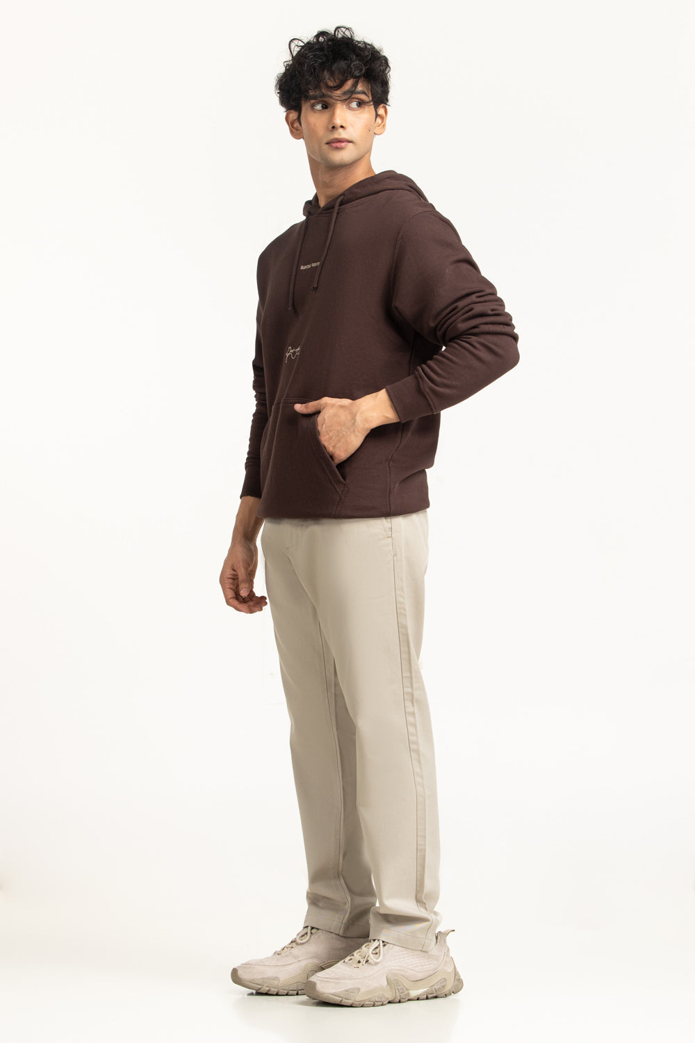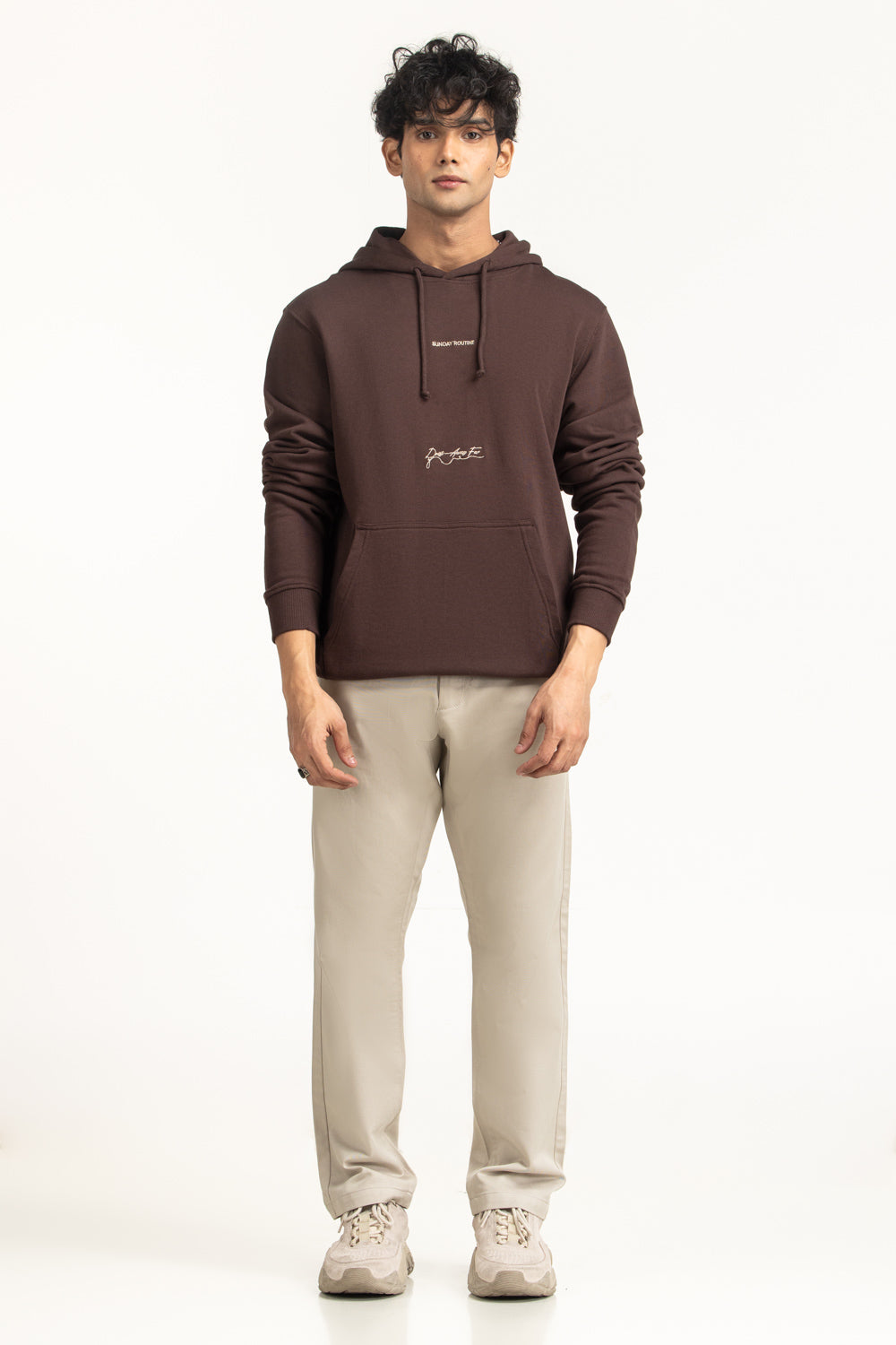 The pullover hoodie in a rich brown color pairs easily with winter neutrals, while staying warm all day long. The blended knit allows comfortable movement through the day. Built for men who likes everyday chic look effortlessly.