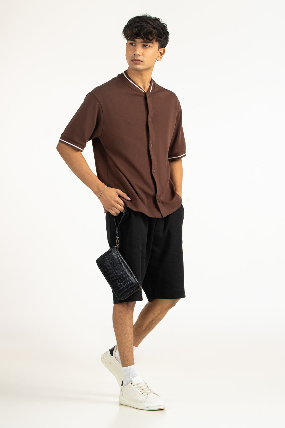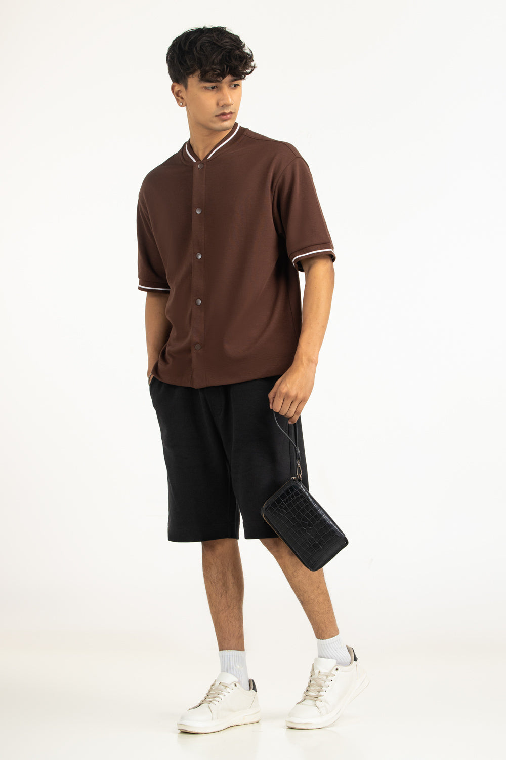 Constructed using durable cotton polyester blended fabric, this regular fit casual shirt delivers structured comfort with breathable wear. The rich chocolate color positioned within the design tone enhances its refined casual styling.