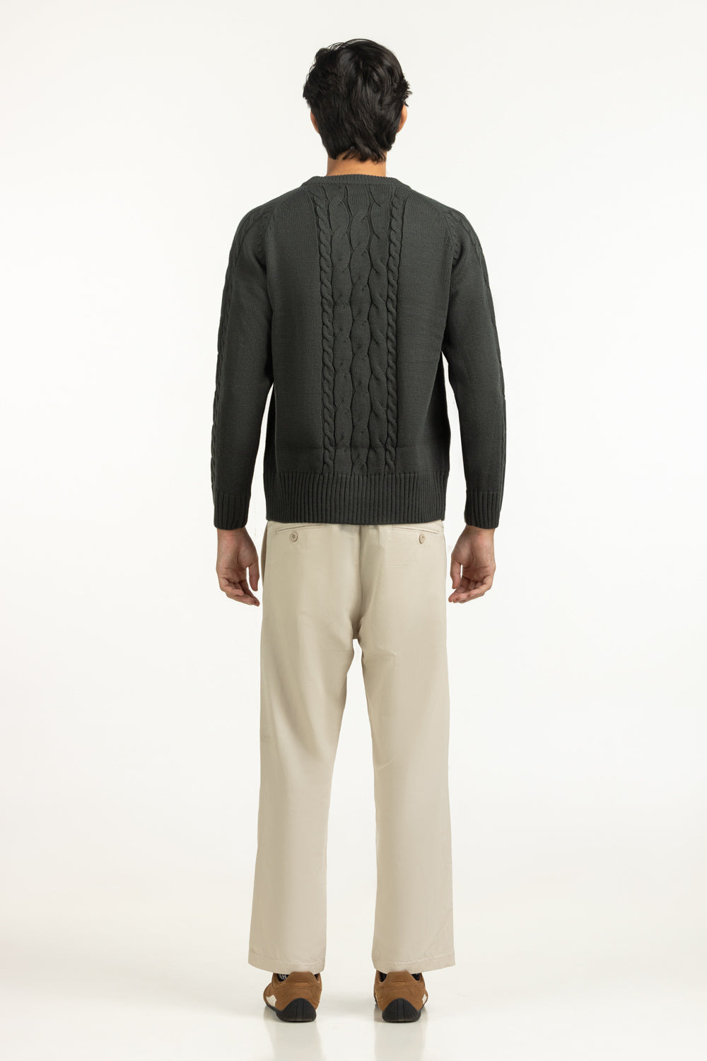 A deep olive tone meets refined craftsmanship in this winter essential. It's knitted texture create quiet movement across the surface, while the crew neckline holds a timeless edge. The regular fit balances comfort with structure, making it versatile across layered or stand-alone looks.