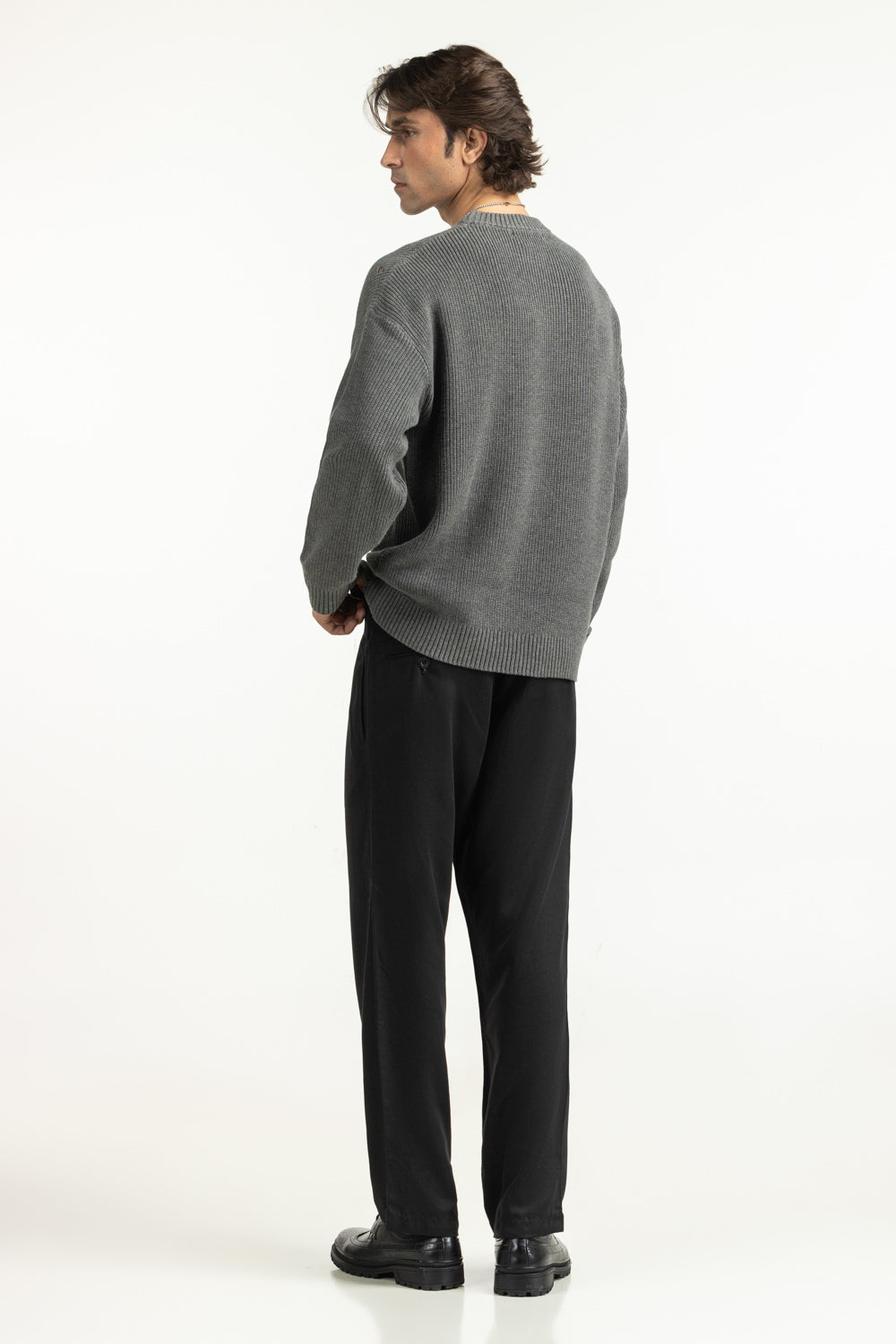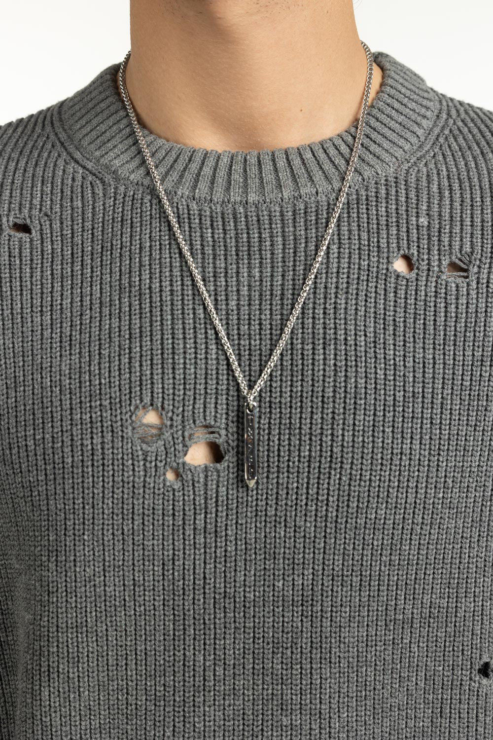 A statement of a refined rebellion, this crew neck sweater carries a torn-out design that adds an edge to winter layering. Crafted from 100% cotton, it balances softness with a durable structure. The regular fit offers easy movement while keeping the silhouette sleek and contemporary. Perfect for the man who values comfort with a touch of rugged charm.