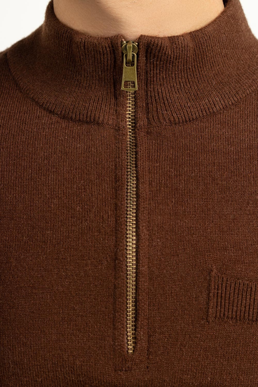 This sweater redefines winter style with its structured regular fit and sleek zipper neckline. The bold color sets a confident tone, while the front pocket adds a casual yet refined touch. Knitted with care, it brings warmth and comfort without compromising elegance.