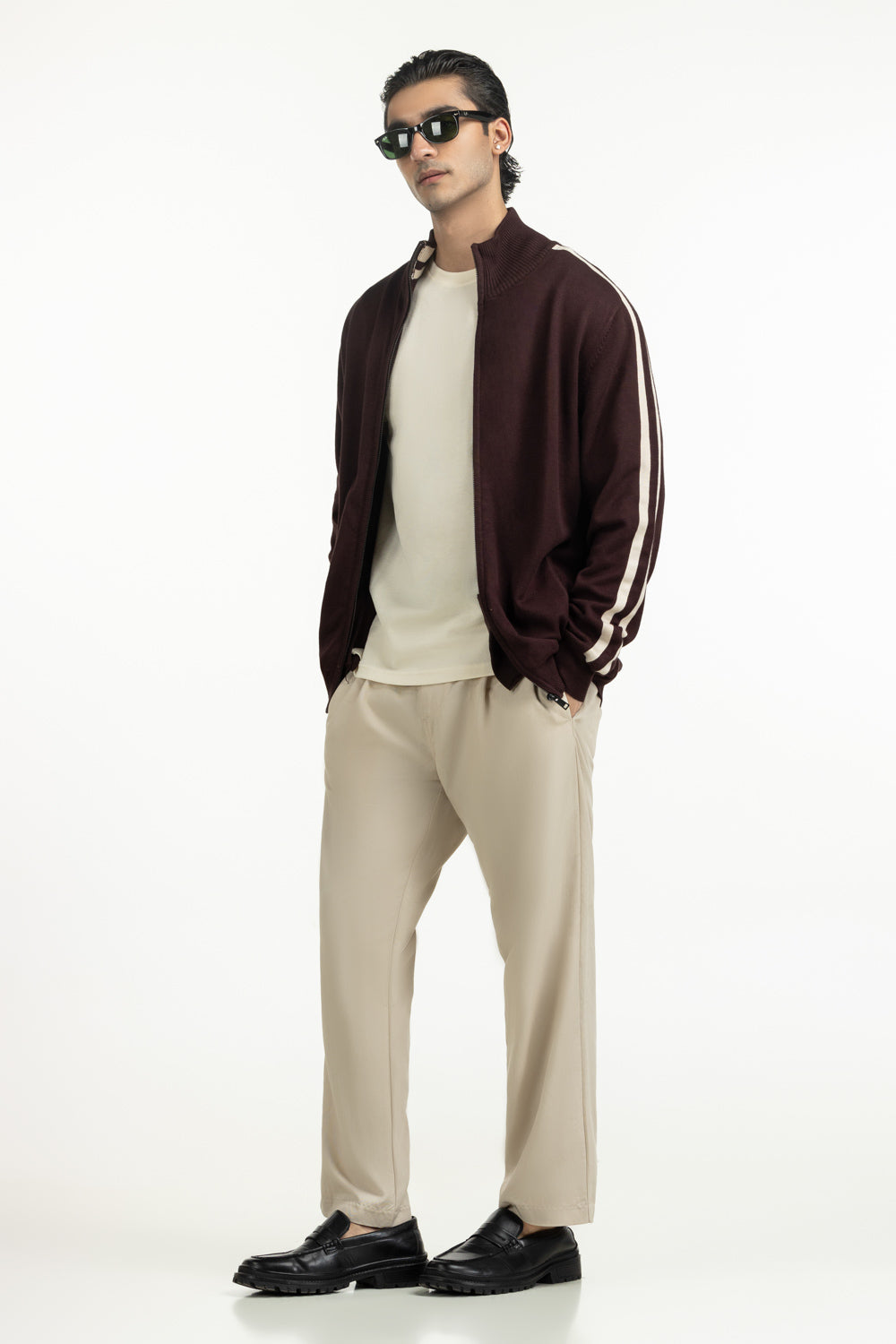 This sweater blends boldness with refinement through its zipper-front design and sleek regular fit. The white stripes on the sleeves add a contemporary rhythm, turning a classic silhouette into a statement. Its knit construction offers durability with comfort, making it ideal for winter styling.