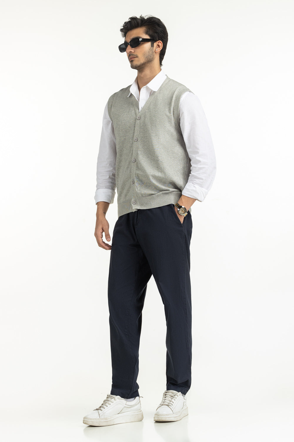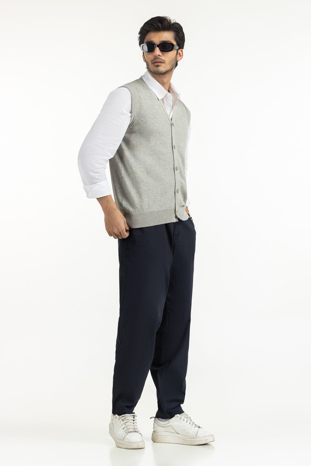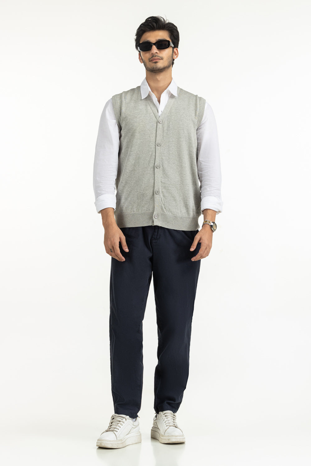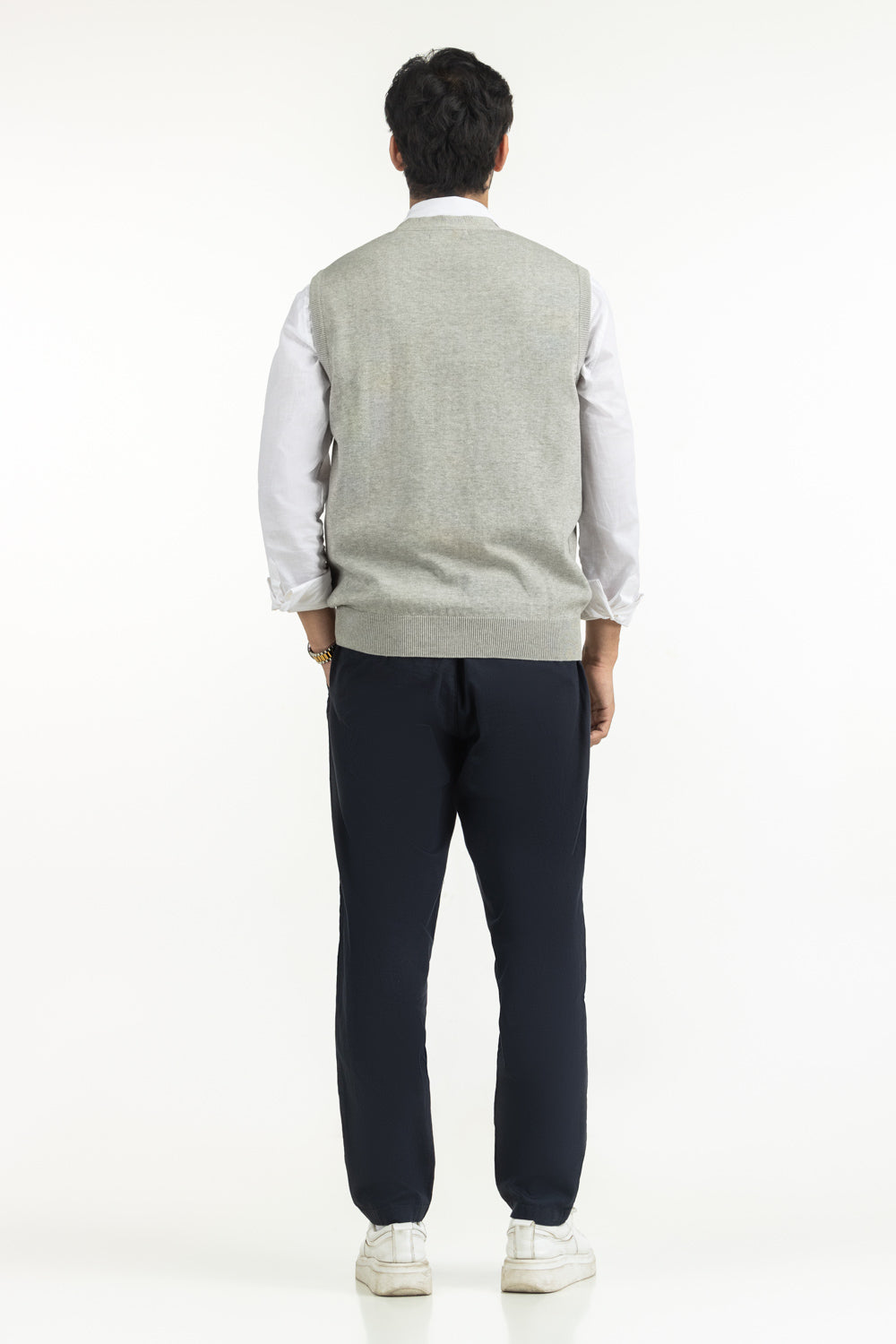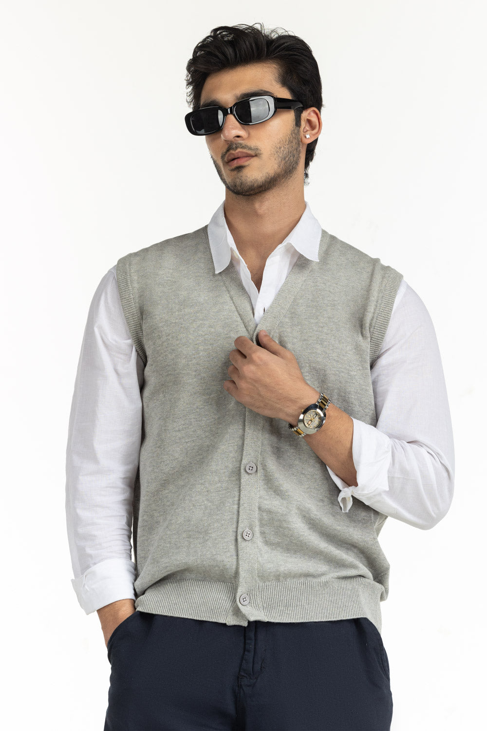A functional mainstay for the cold season, this sleeveless sweater in a sot grey is designed for effortless layering, providing warmth without the bulk. The cotton knit ensures breathability and softness, adapting perfectly to your movements throughout the day.