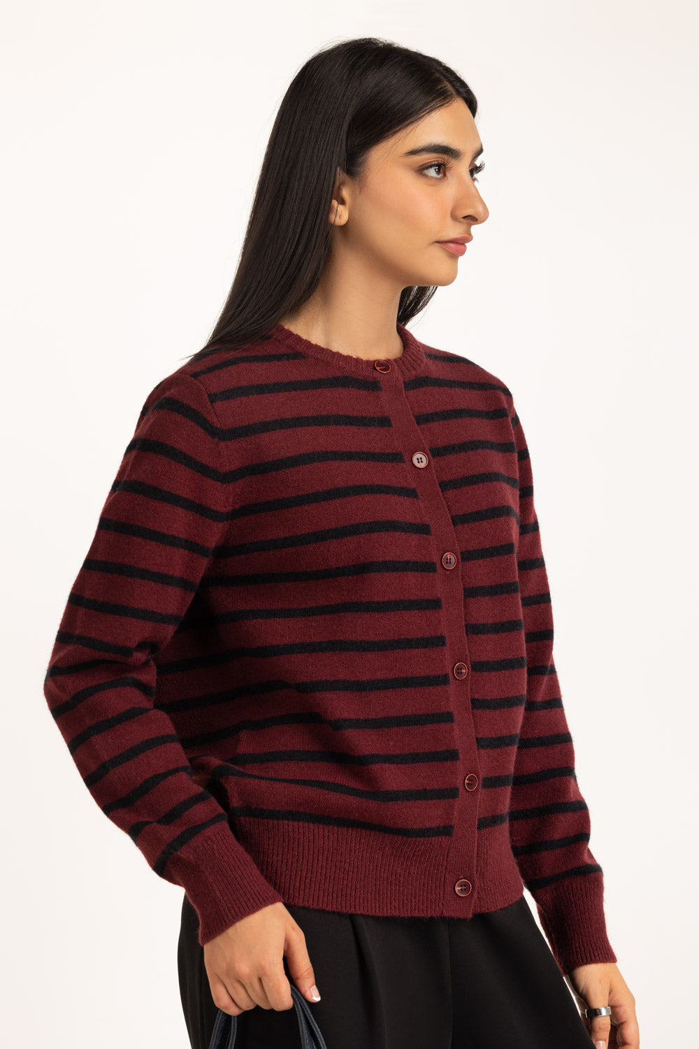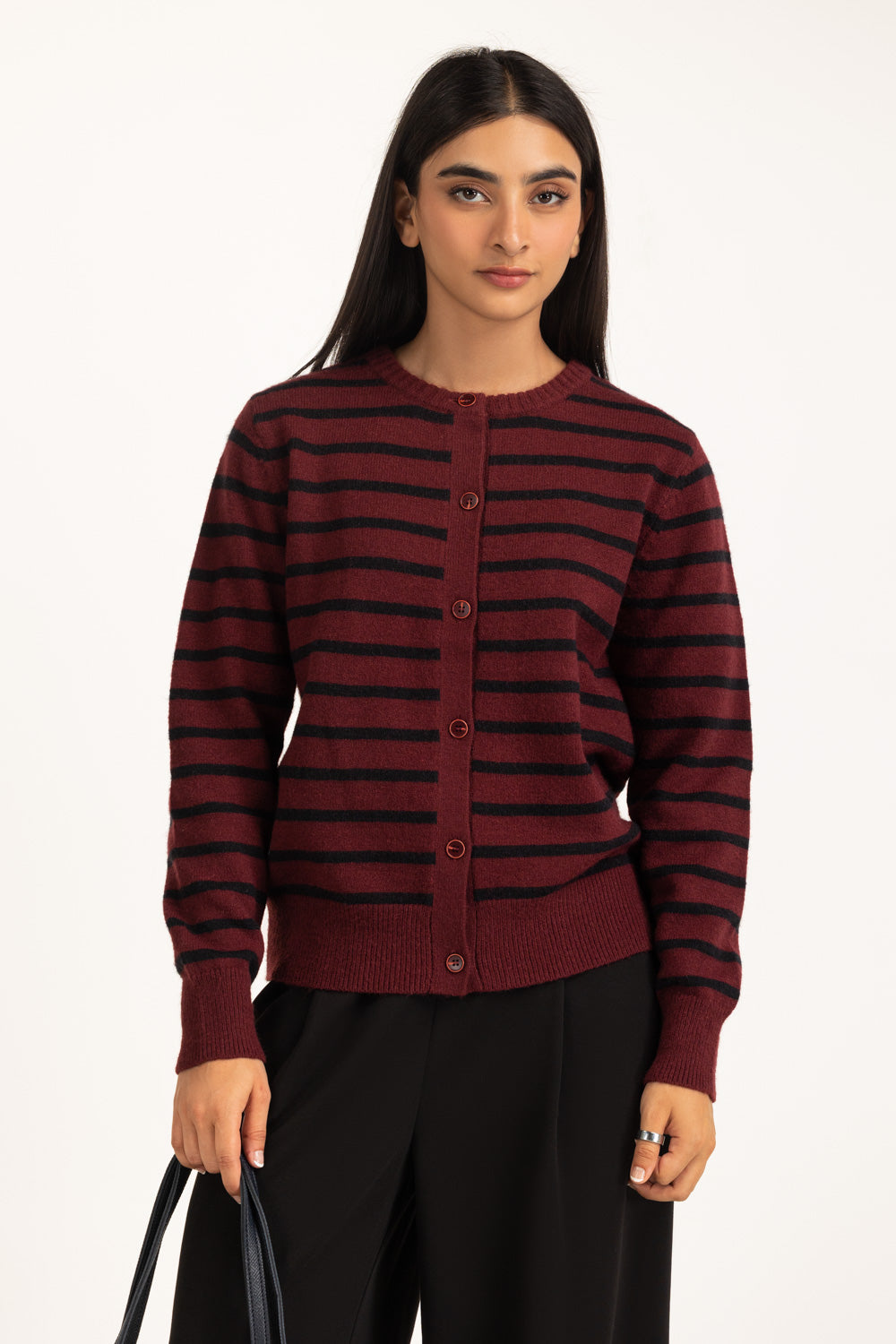 This cardigan redefines knitwear with bold stripes that carry youthful vibrance and refined charm. Its crew neck keeps the look streamlined, while the button-down design adds functionality. The regular fit creates a relaxed yet polished silhouette. A premium essential for those who like their layers to make a statement.