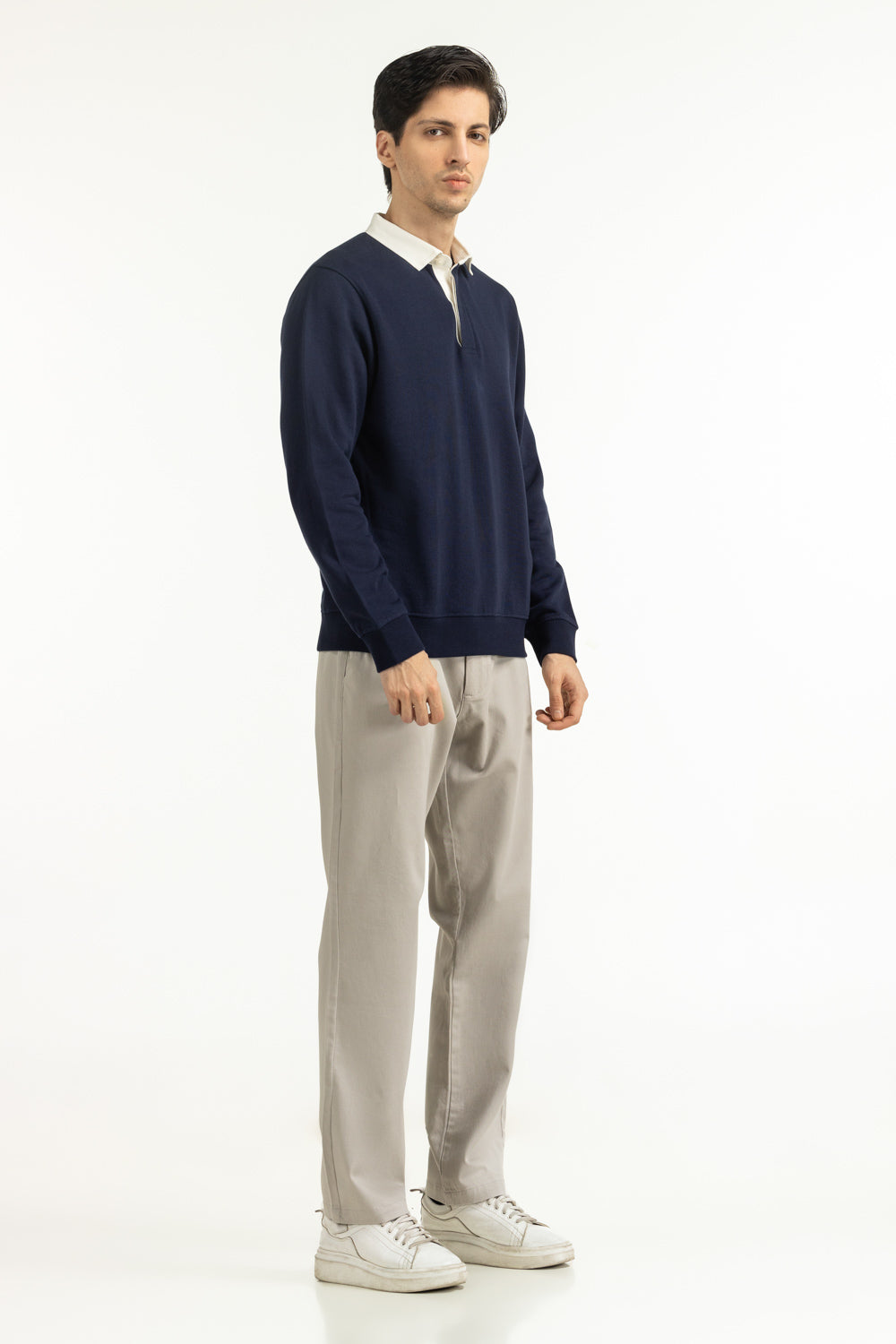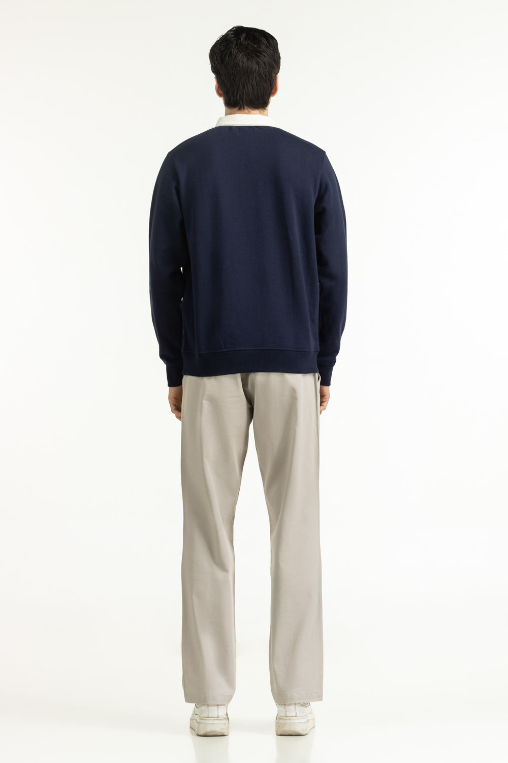 Structured yet soft, this sweatshirt in Prussian blue offers a composed winter look. The shirt collar introduces tailored precision, while the fabric ensures warmth and comfort, while transitioning effortlessly from day to night.