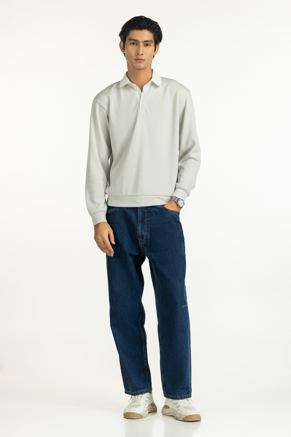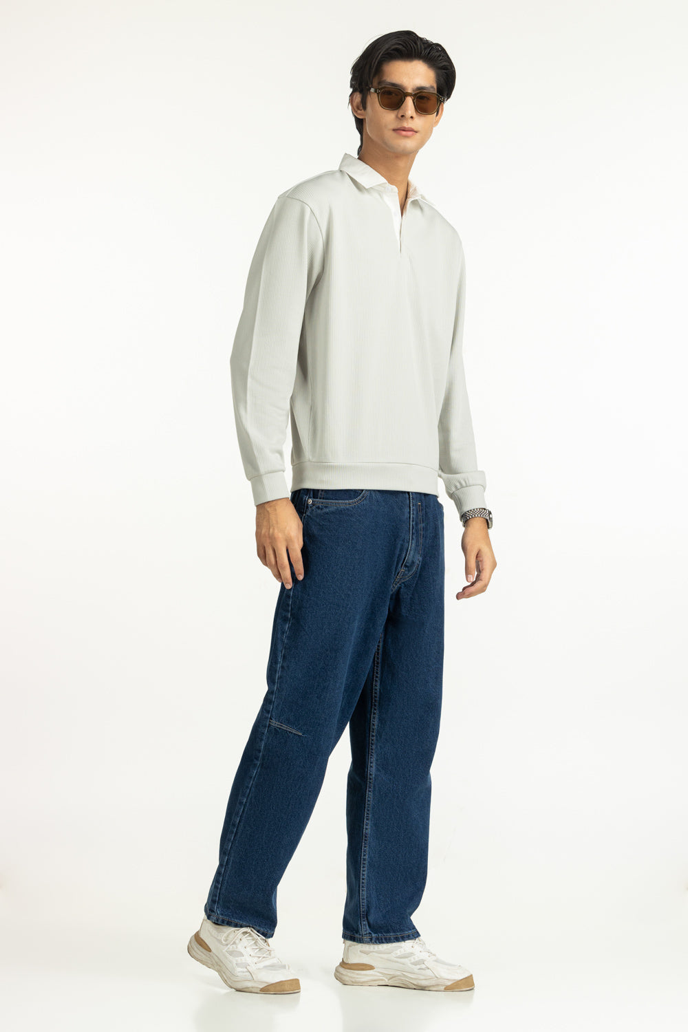 A sweatshirt with the poise of tailoring, this sweatshirt in a light grey color is defined by its shirt collar and button neckline. Crafted in a luxuriously soft textured fabric, it offers both structure and comfort.