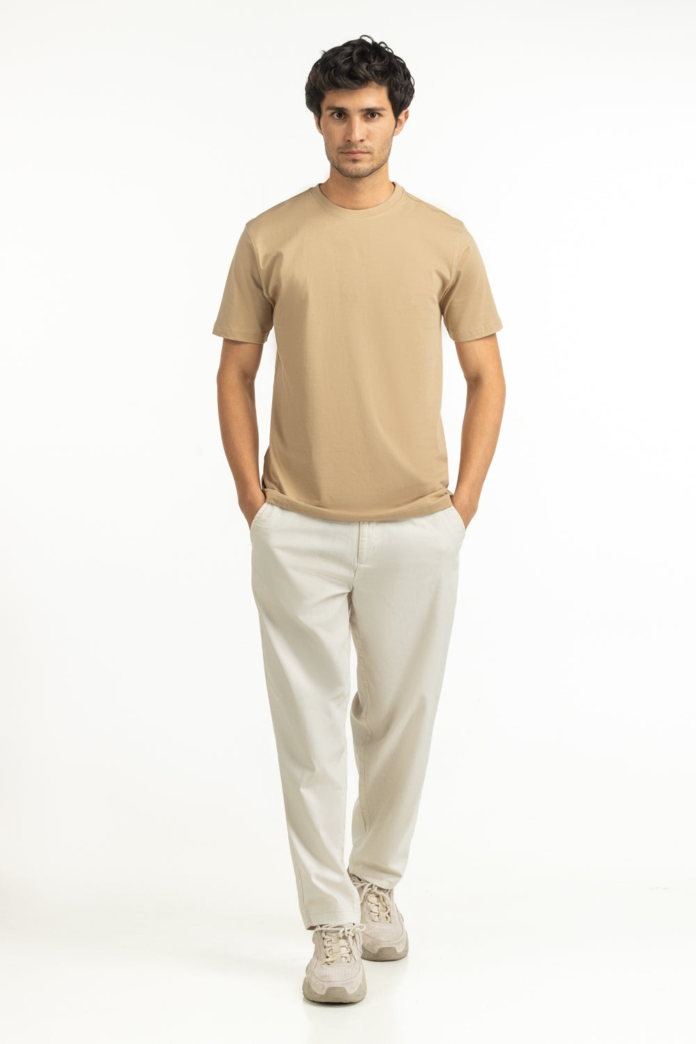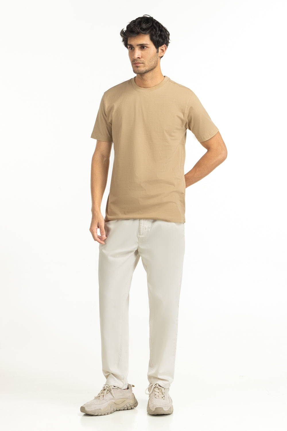 A staple with a seasonal twist, this T-shirt in a warm, sunlit shade captures casual sophistication. The 100% cotton jersey fabric keeps it light, smooth, and perfect for summer layering.