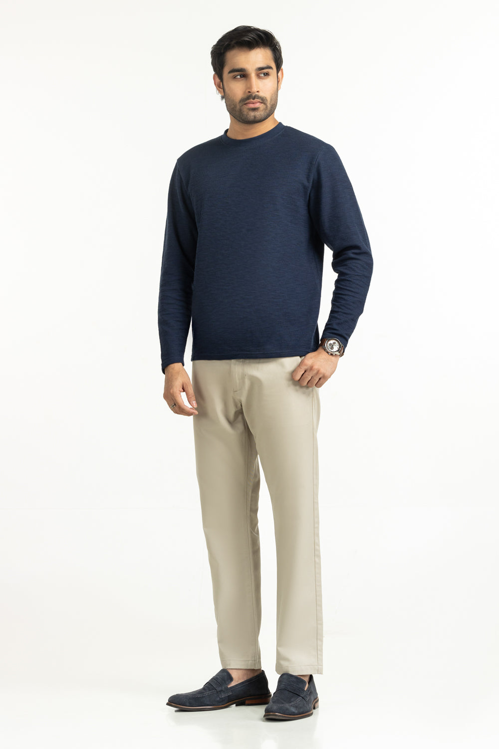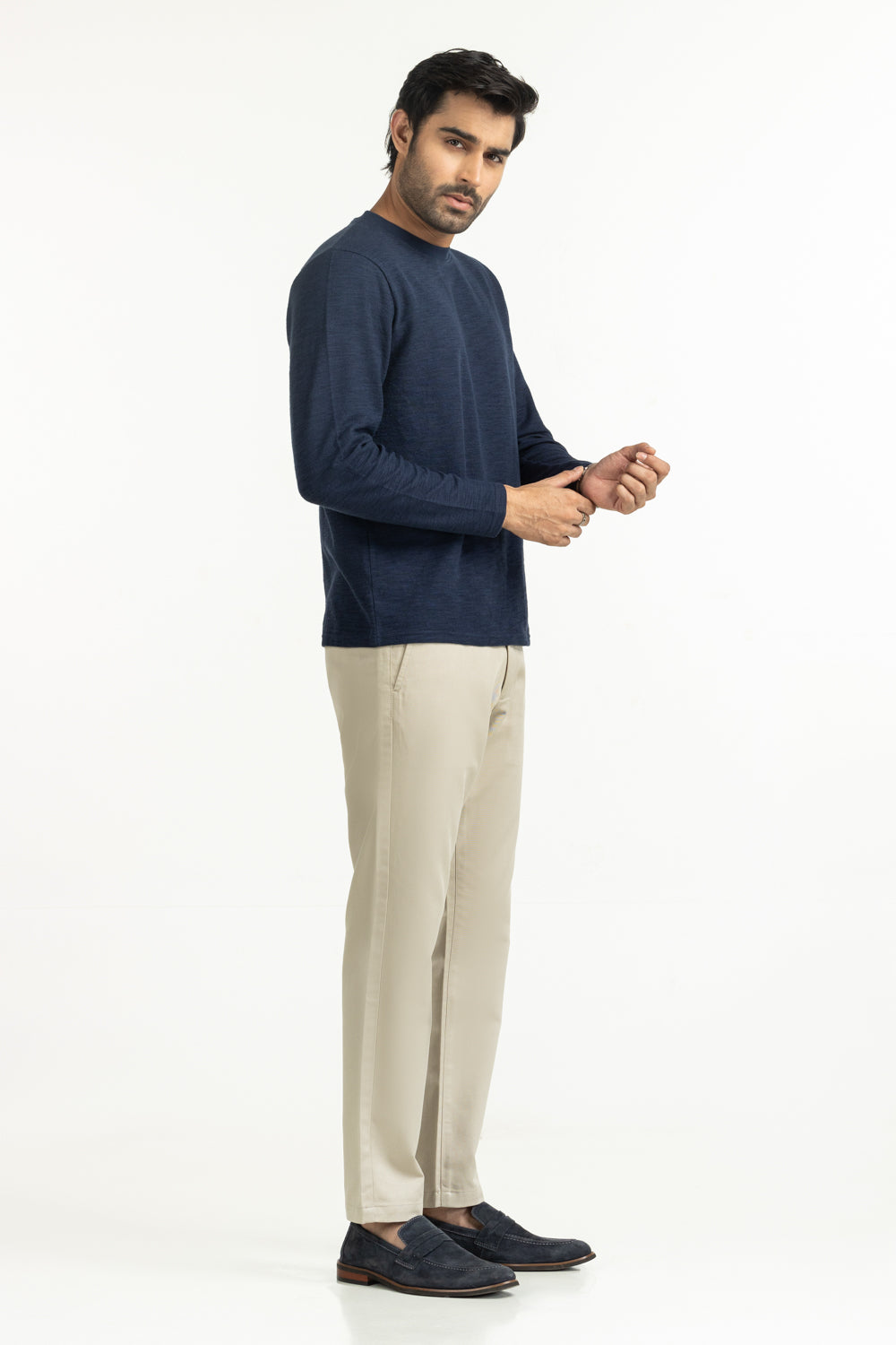 Bold yet refined, this textured blue T-shirt is a modern must-have. Its full sleeve design and regular fit, makes it suitable for layering or standalone wear.