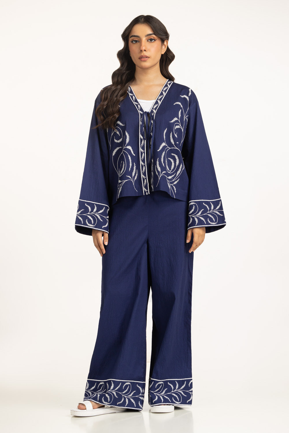 Designed for comfort with character, this embroidered top is tailored from a seer sucker fabric that feels cool and textured to the touch. The subtle embroidery with a drawstring neckline adds charm to its contemporary silhouette. Pair it with matching trousers for an effortlessly balanced ensemble.
