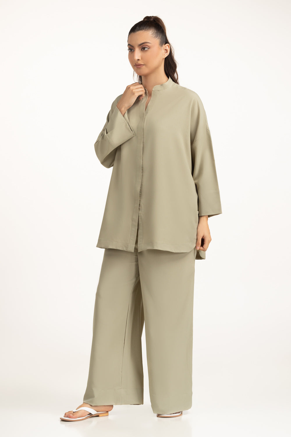 This top brings a smooth, winter-ready comfort with a regular fit that feels naturally relaxed through the day. Its soft green tone and a front open button-down style adds a cool, modern edge. Designed to pair perfectly with the matching trousers, for a coordinated everyday look.