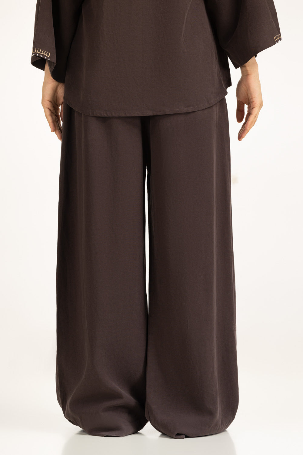 These trousers exude refined comfort with their plush textured fabric and classic cut. Its rich brown color gives them timeless appeal, perfect for creating versatile winter looks. Pair them with the matching shirt for a monochrome finish.