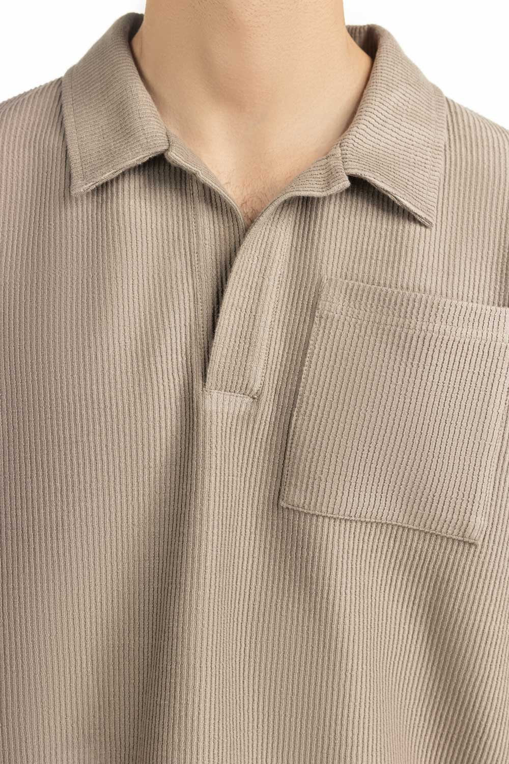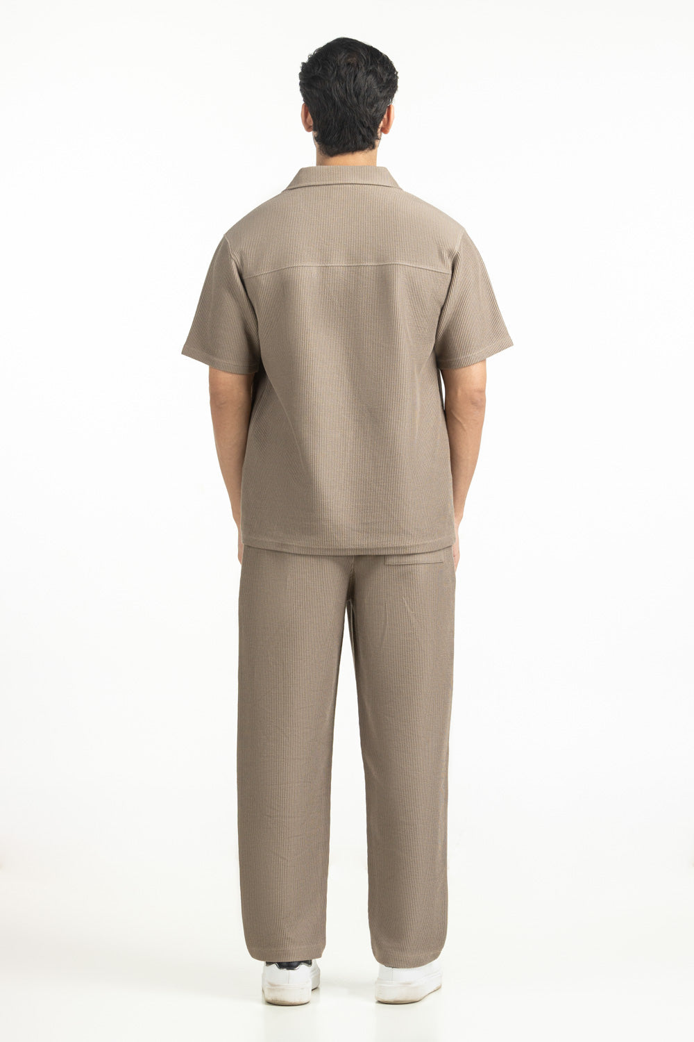 Crafted in a soothing earthy shade, this Co-Ord set stands out for its refined texture. The polo with a practical front pocket adds character, while the straight trousers bring versatility in your wardrobe.