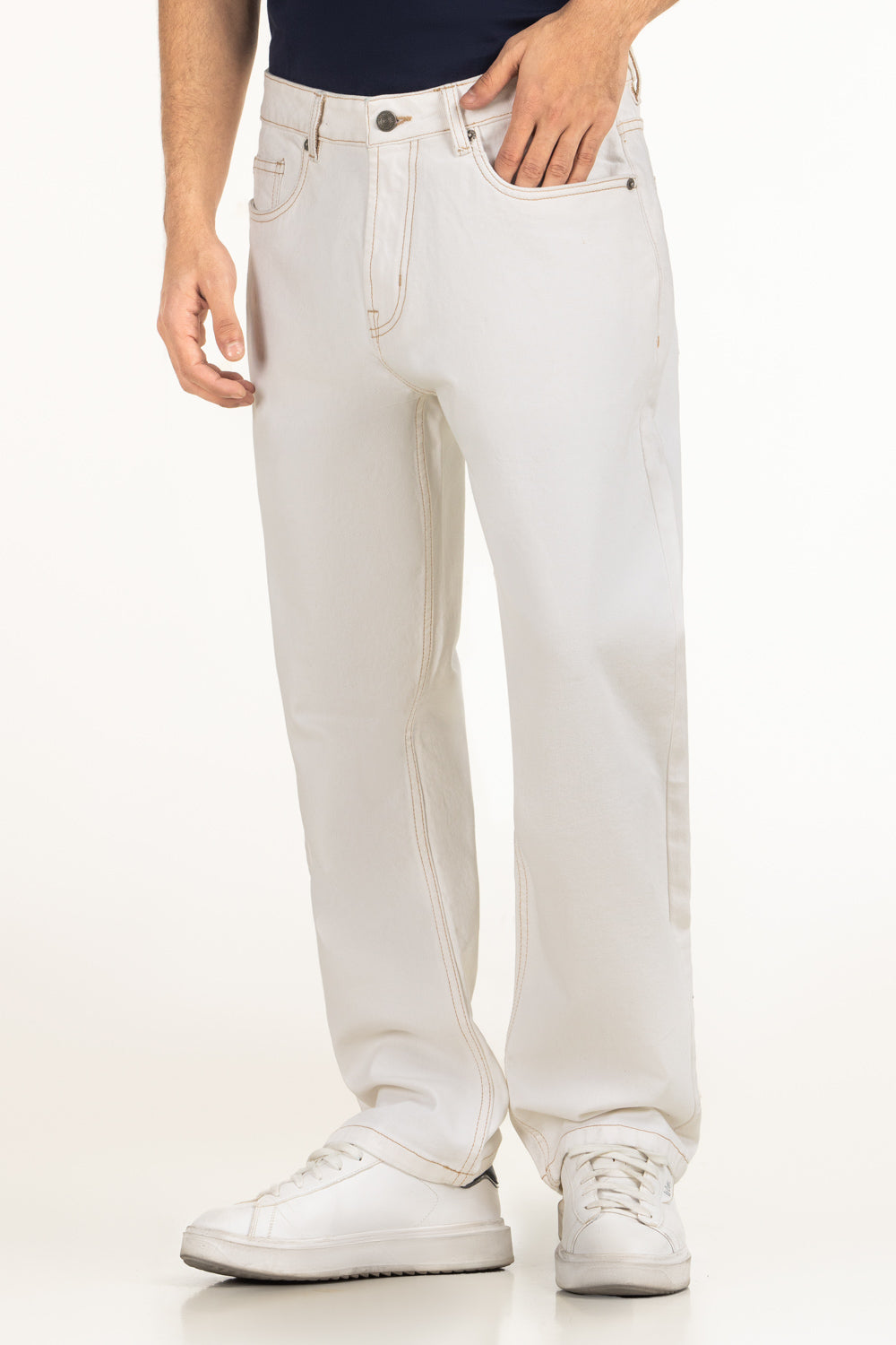 Off-white jeans made from 99% cotton and 1% elastane, providing comfort and style. The off-white relaxed fit design is ideal for casual everyday wear or weekend activities.