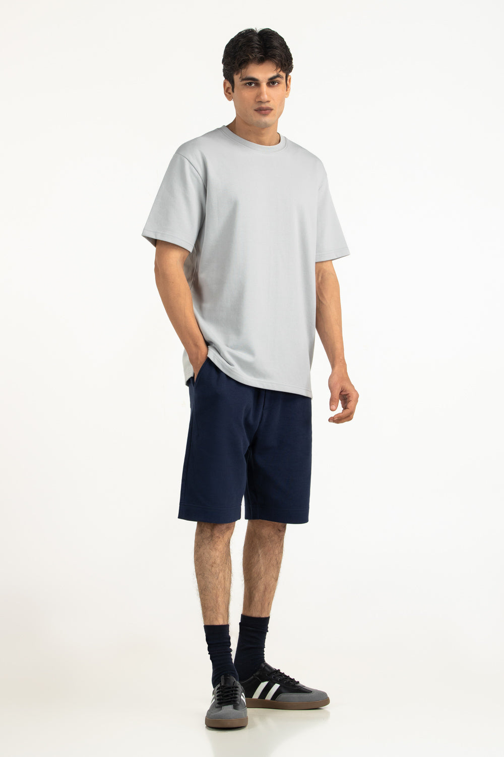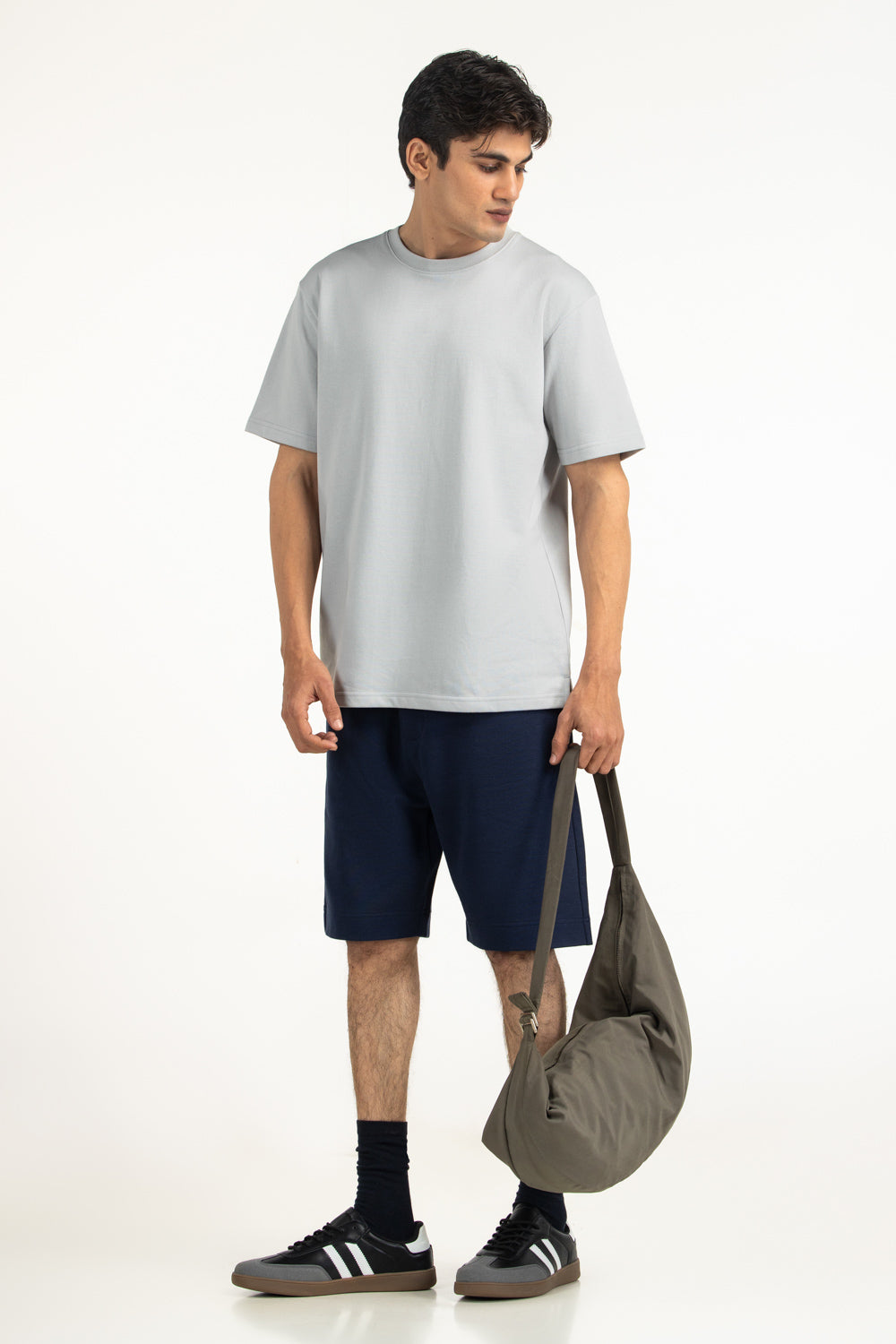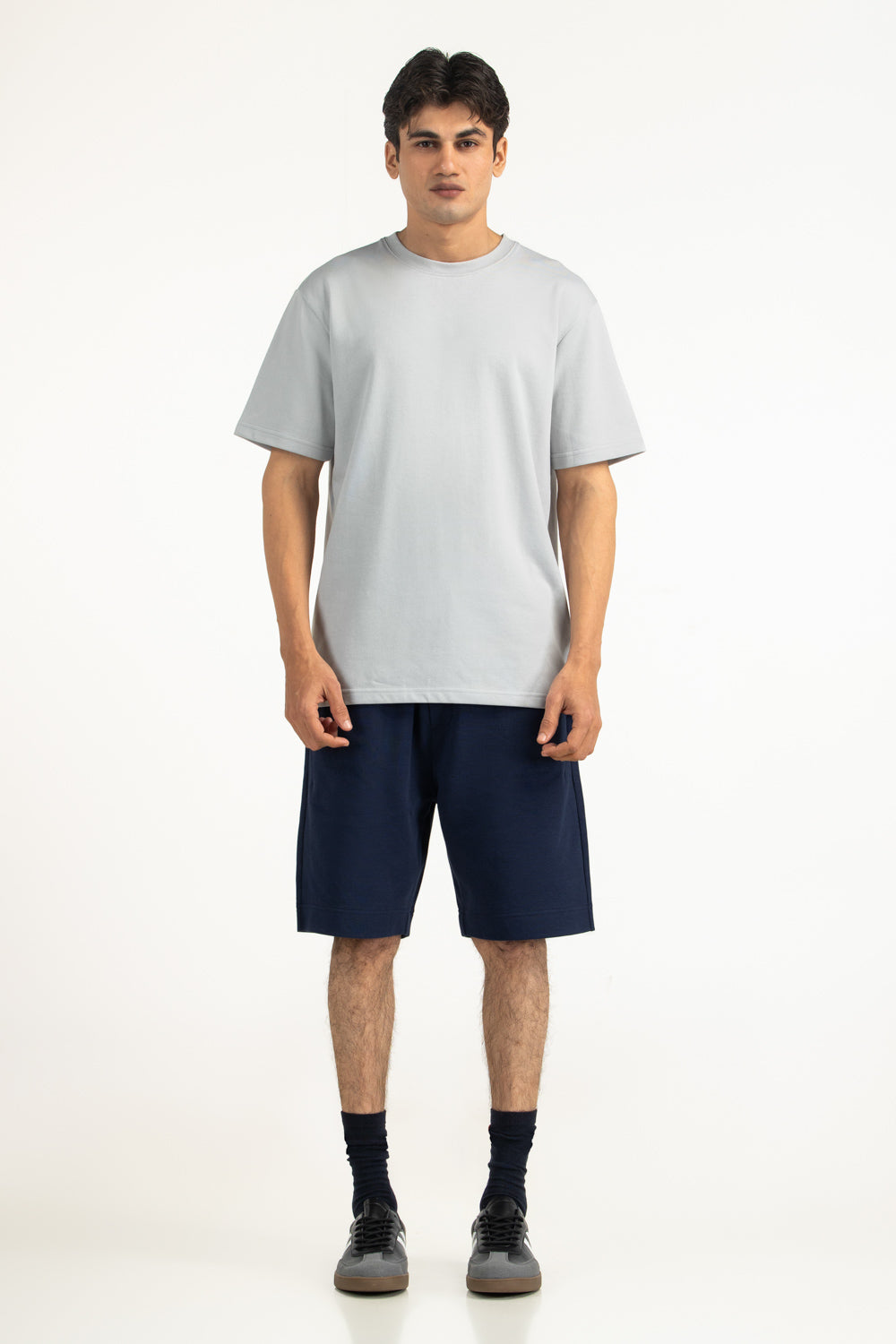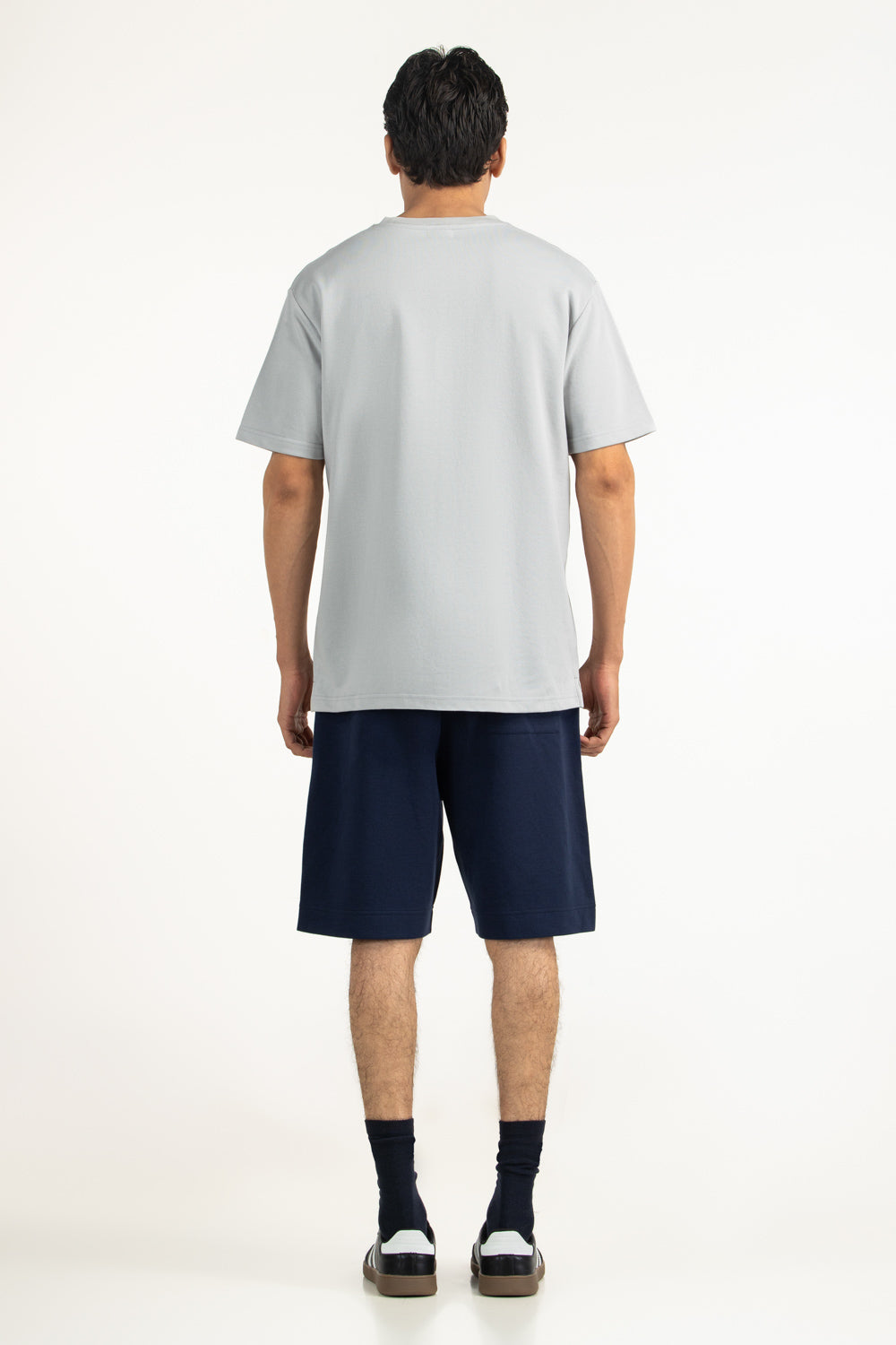 Made from soft cotton polyester blended fabric, this relaxed fit tee offers breathable comfort with flexible wearability. The subtle light grey color placed within the design enhances its laid-back modern styling.