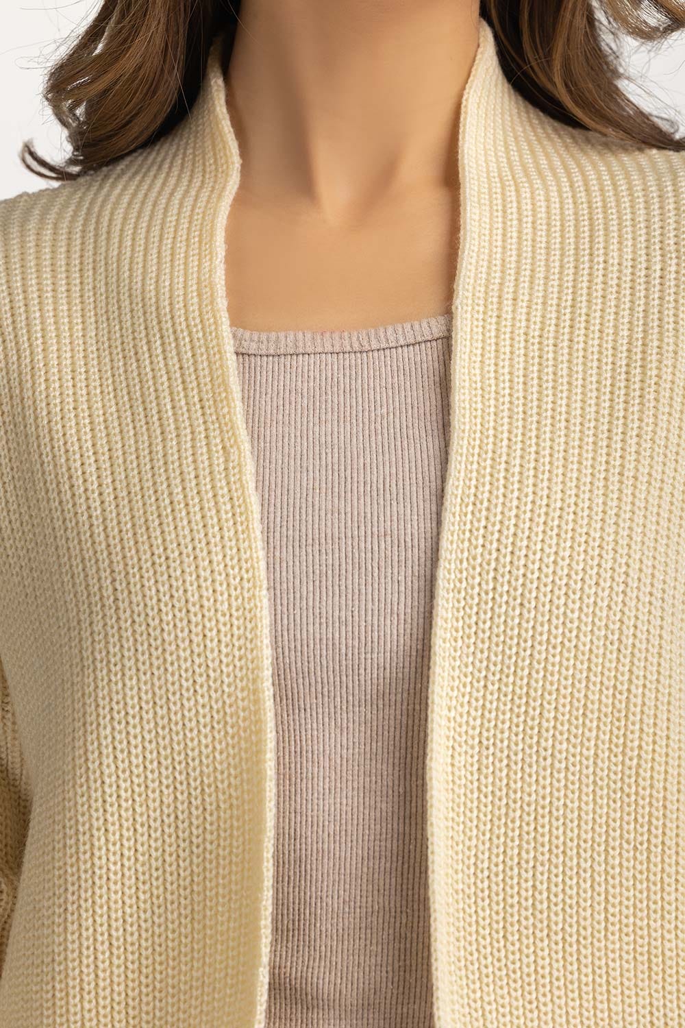 Front Open Mid Length Shrug With Pockets Regular Fit Model height is 5' 5". Model is wearing...