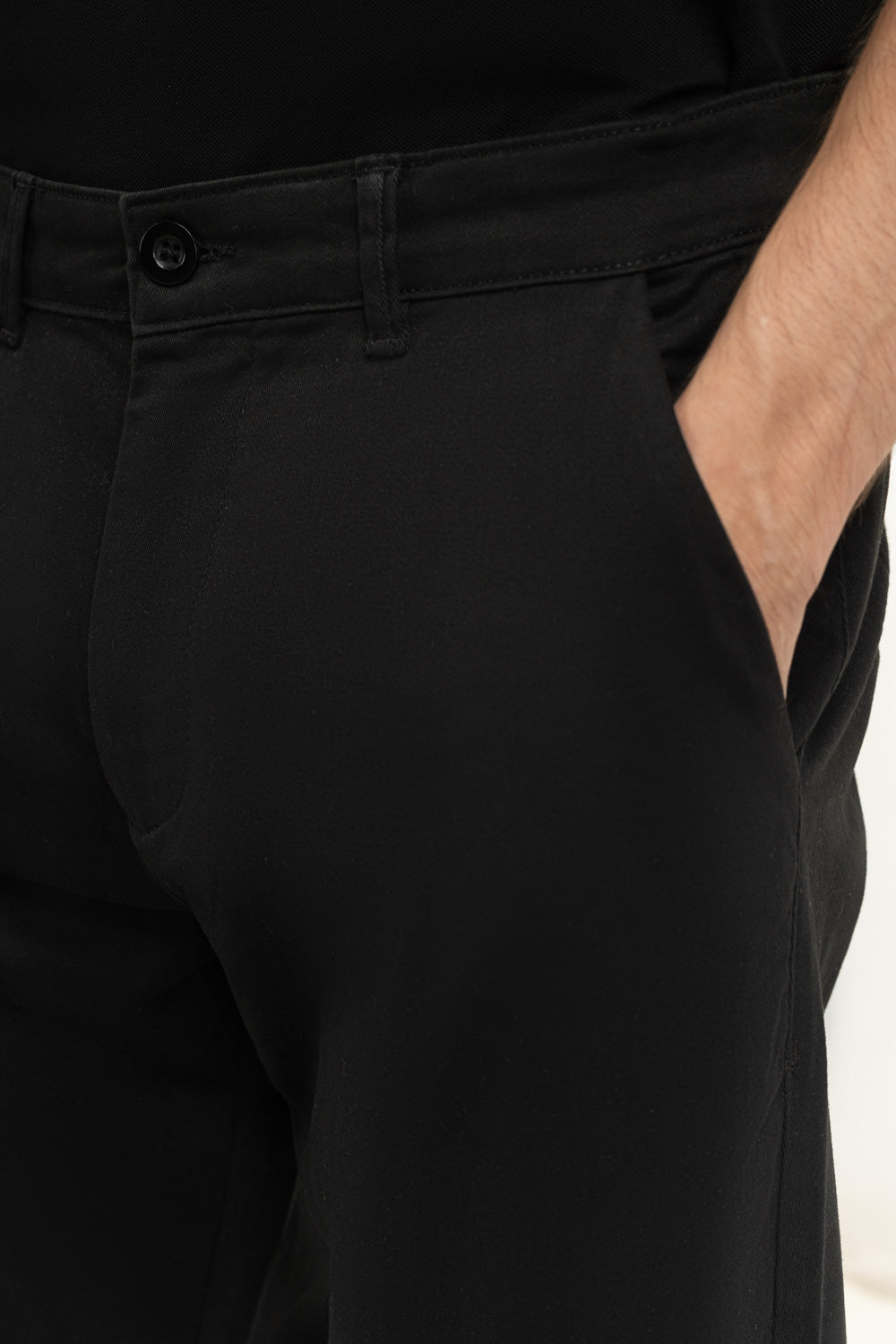Tailored in a slim fit, these black khaki pants bring refined structure with the stretchy comfort. The cotton-elastane blend ensures ease of movement through long wear. While transitioning seamlessly from desk to downtime.