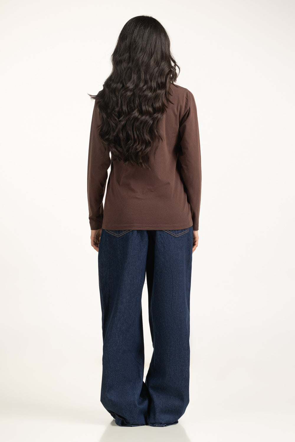 In a warm earthy hue, this slim-fit top stands out as a polished winter staple. The long sleeves offer cozy coverage, while the fitted cut adds a sophisticated edge all day long.