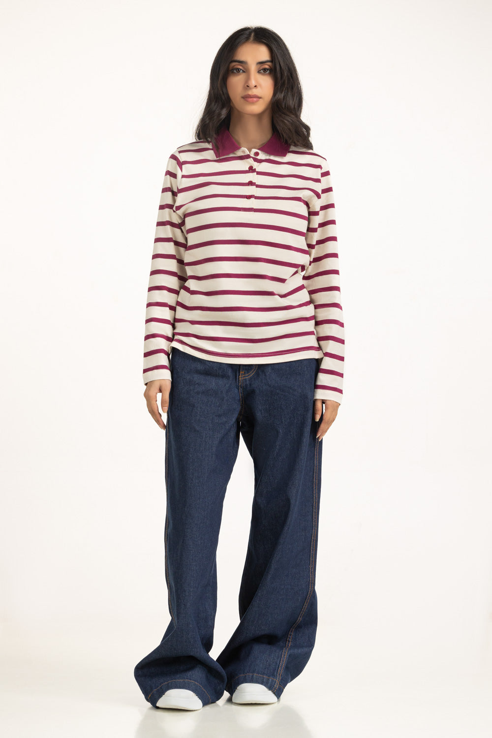 Made for contemporary styling, this striped top with a slim-fit carries a structured collar. The button closure makes it functional and stylish, with unmatched comfort.