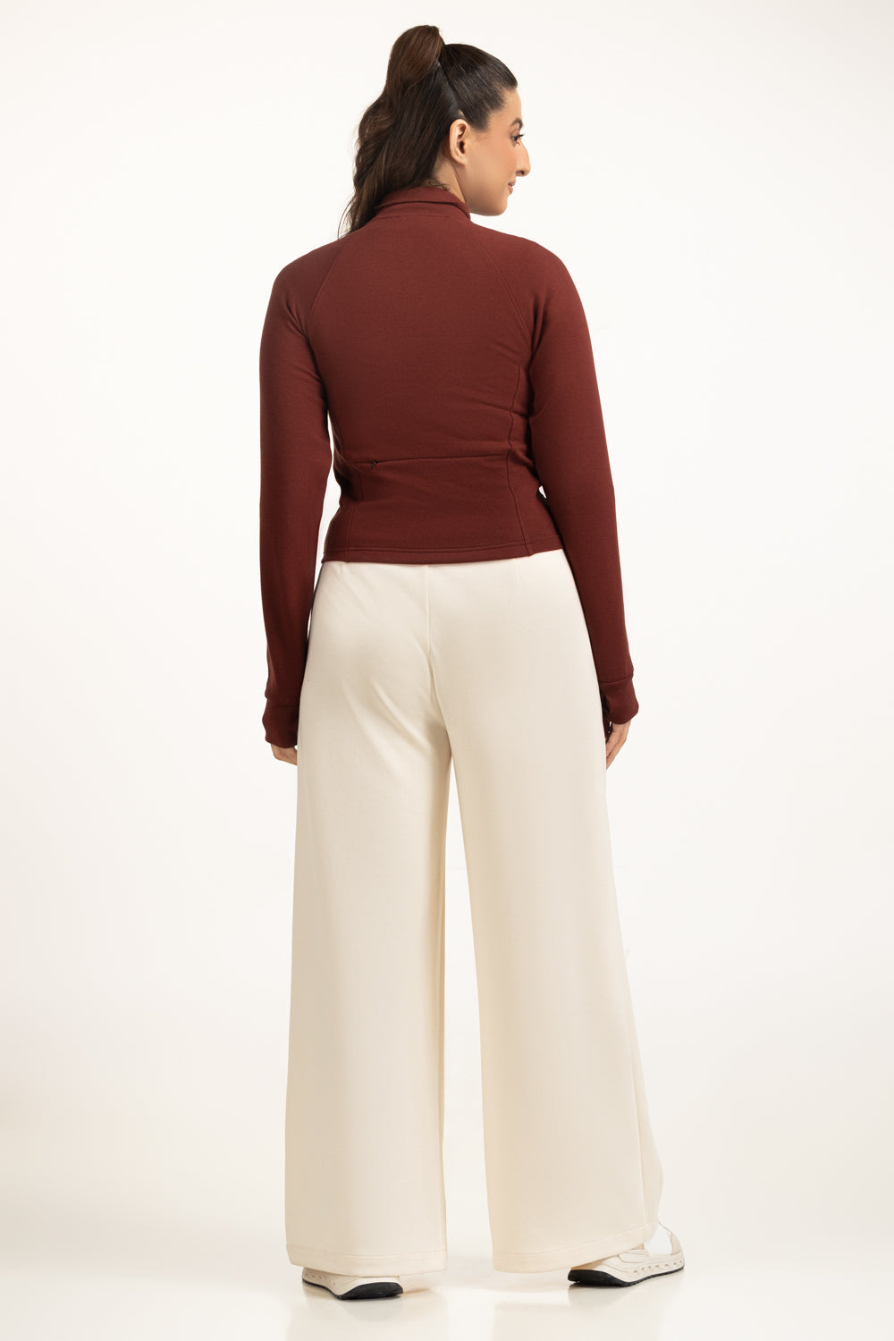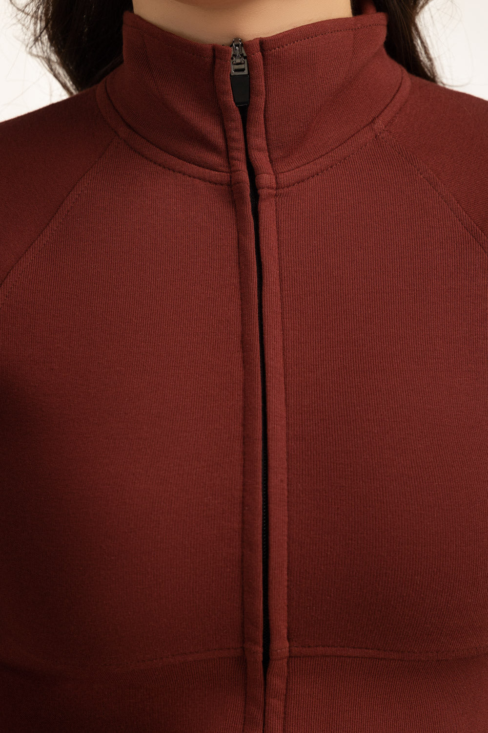 This slim-fit top brings sharp, youthful energy to your winter wardrobe with its clean silhouette and smooth blended texture. The rich red color instantly adds character, giving even your simplest outfits a standout edge. Its high-neck zipper front design makes it versatile enough for brisk mornings and cozy evenings.
