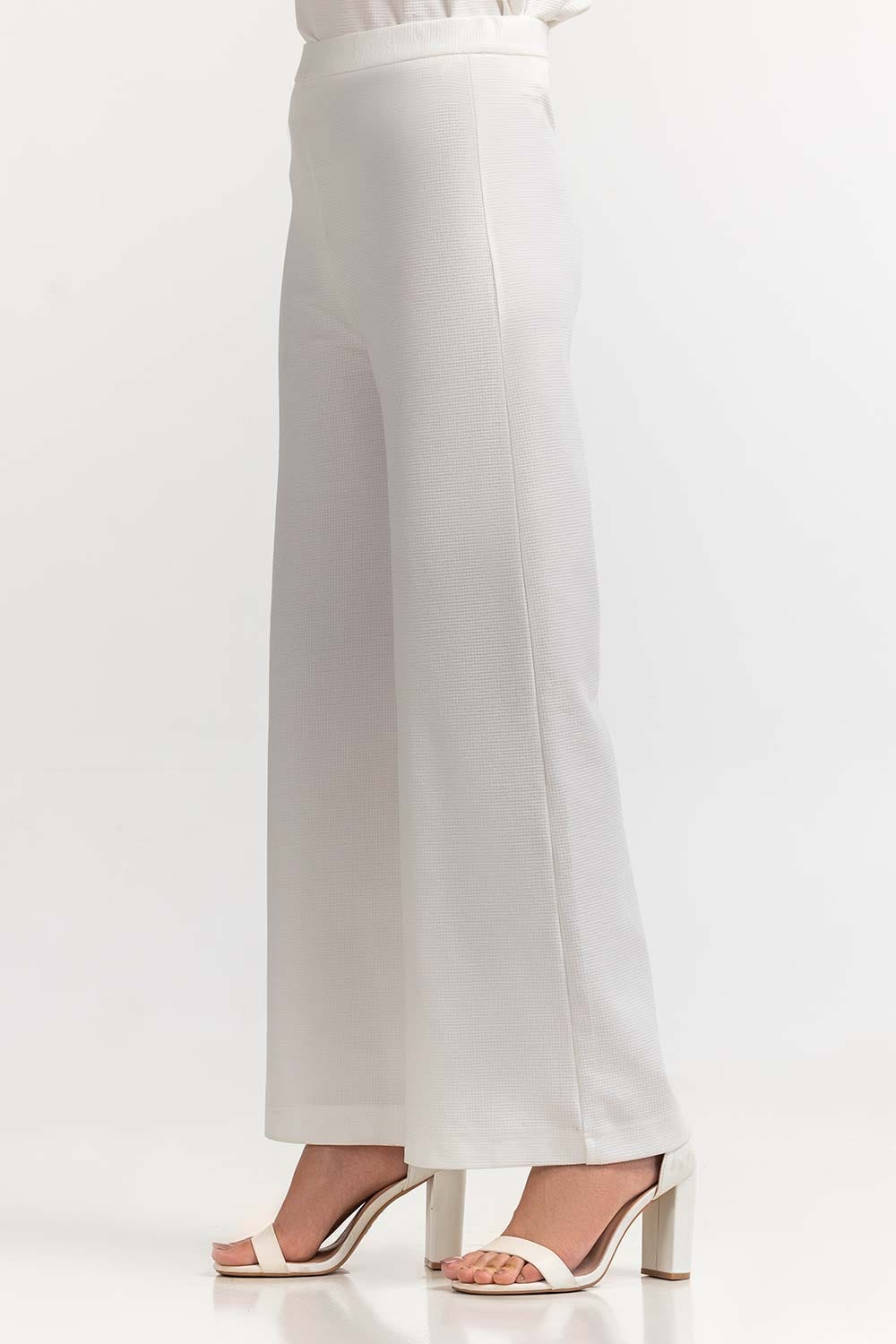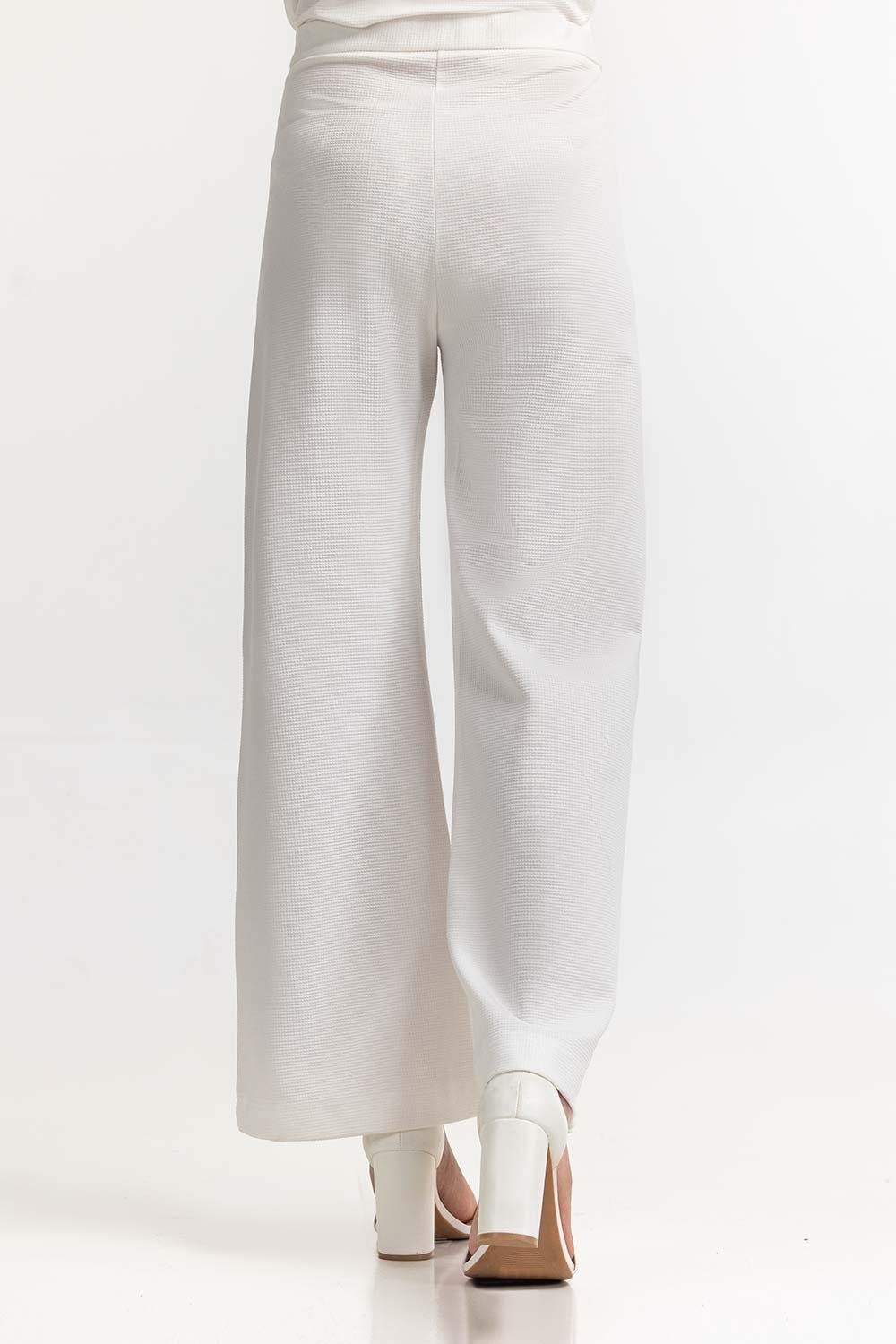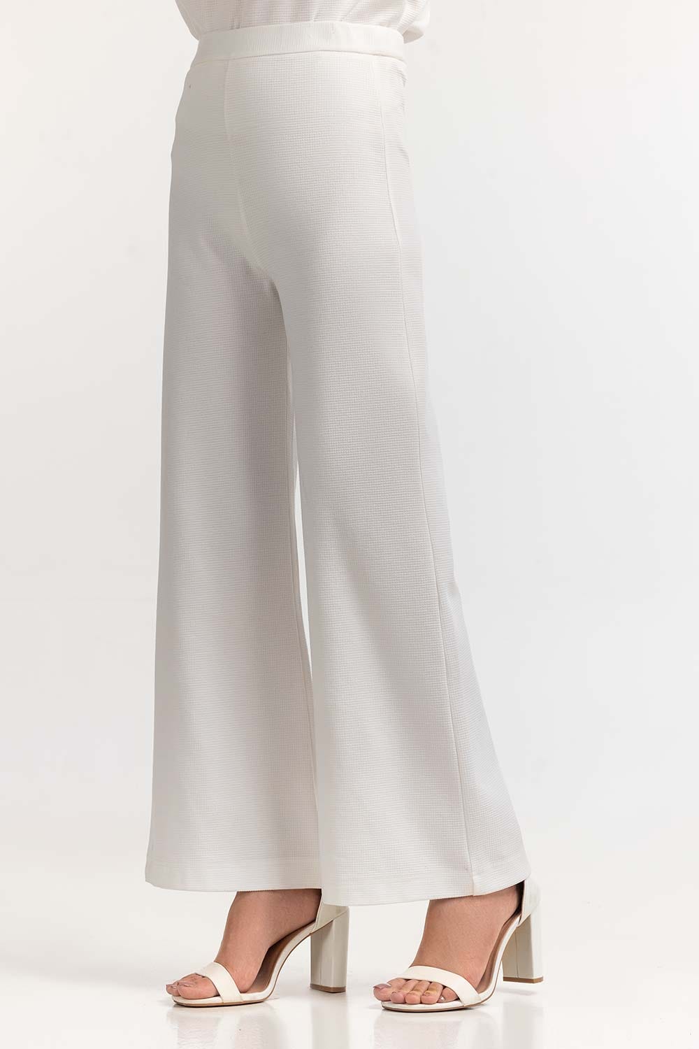 Mid Rise Textured Fabric White Trouser with Straight Fit��
